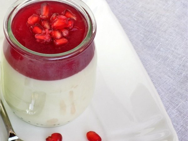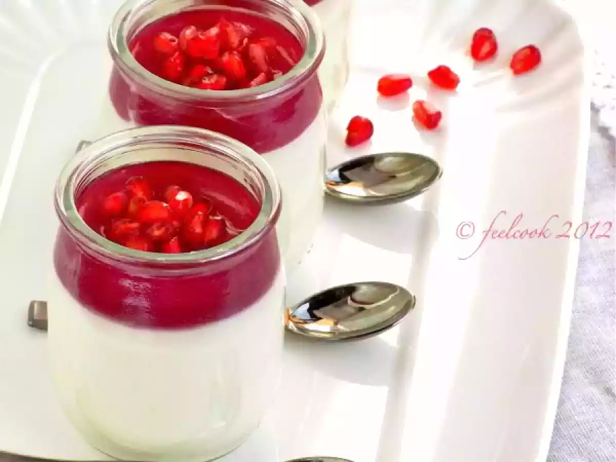 Mousse al cioccolato bianco e zenzero con gelatina di melagrana