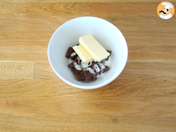 Sciogliete il cioccolato al latte insieme alla panna fresca e al burro. Mescolate per bene.