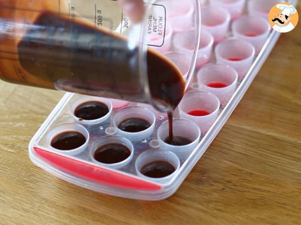 Versate il composto in un contenitore per il ghiaccio e mettete in congelatore per almeno 1 ora.
