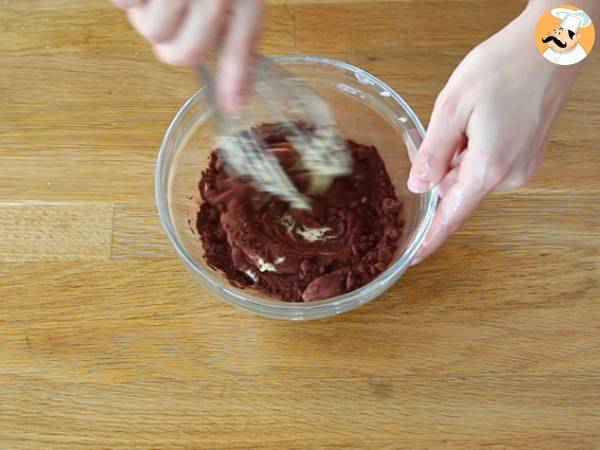 Dividete l'impasto in due parti. In una parte aggiungete circa 1 cucchiaino di estratto di vaniglia, nell'altra aggiungete il cacao in polvere. Mescolate bene entrambe le preparazioni.