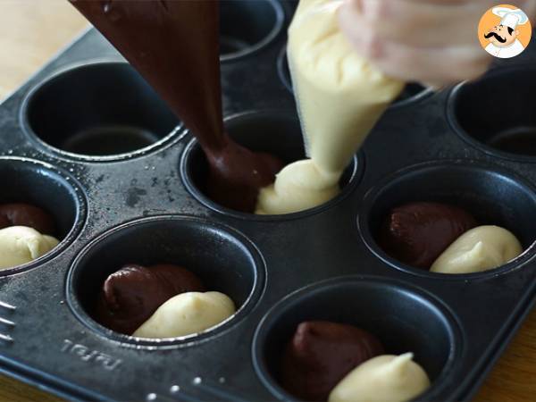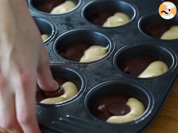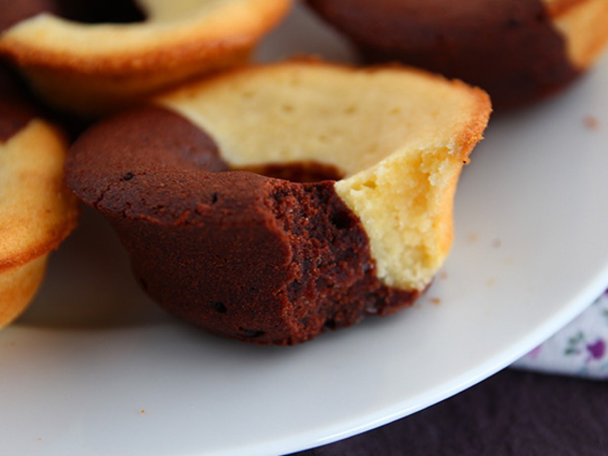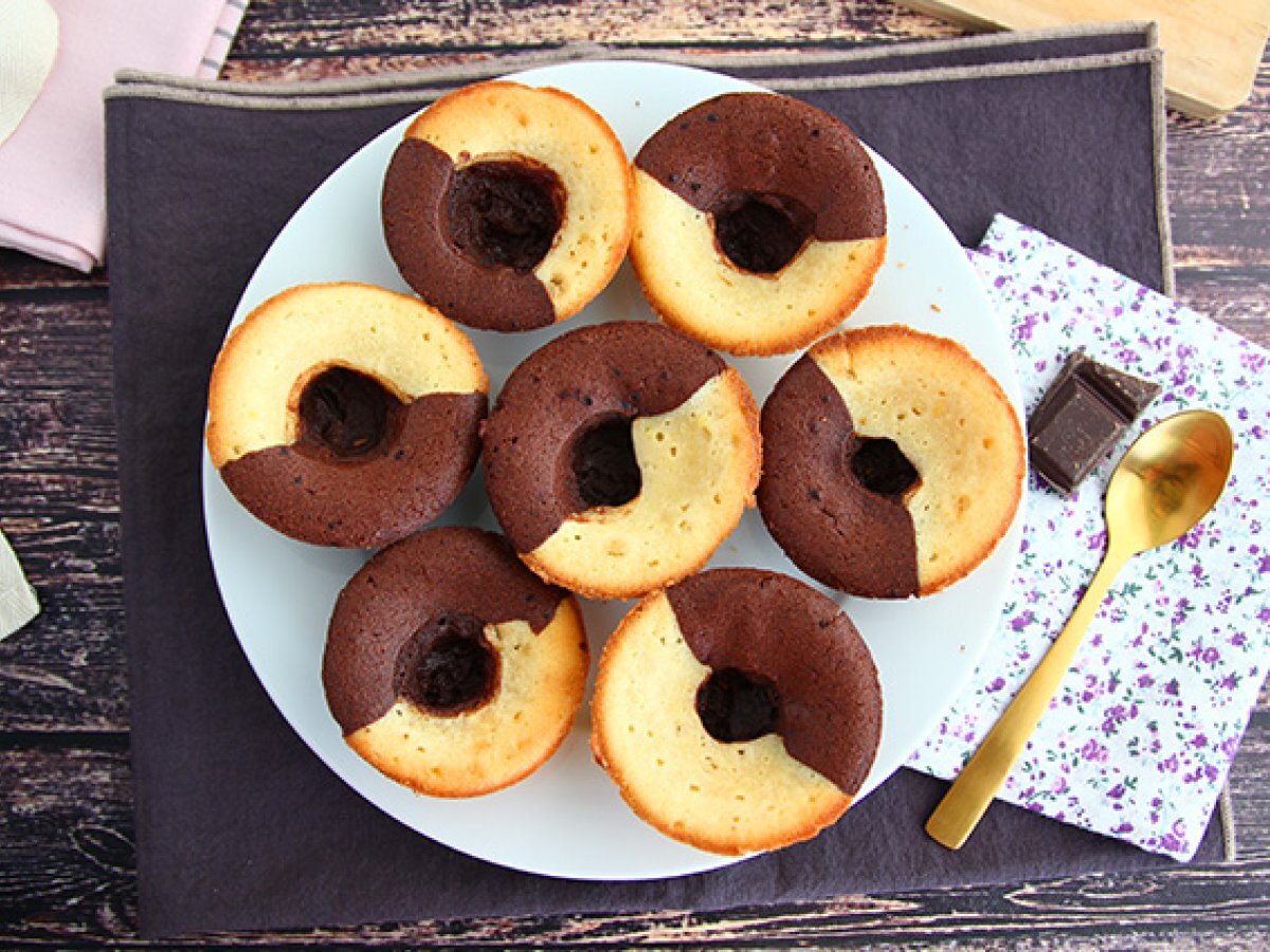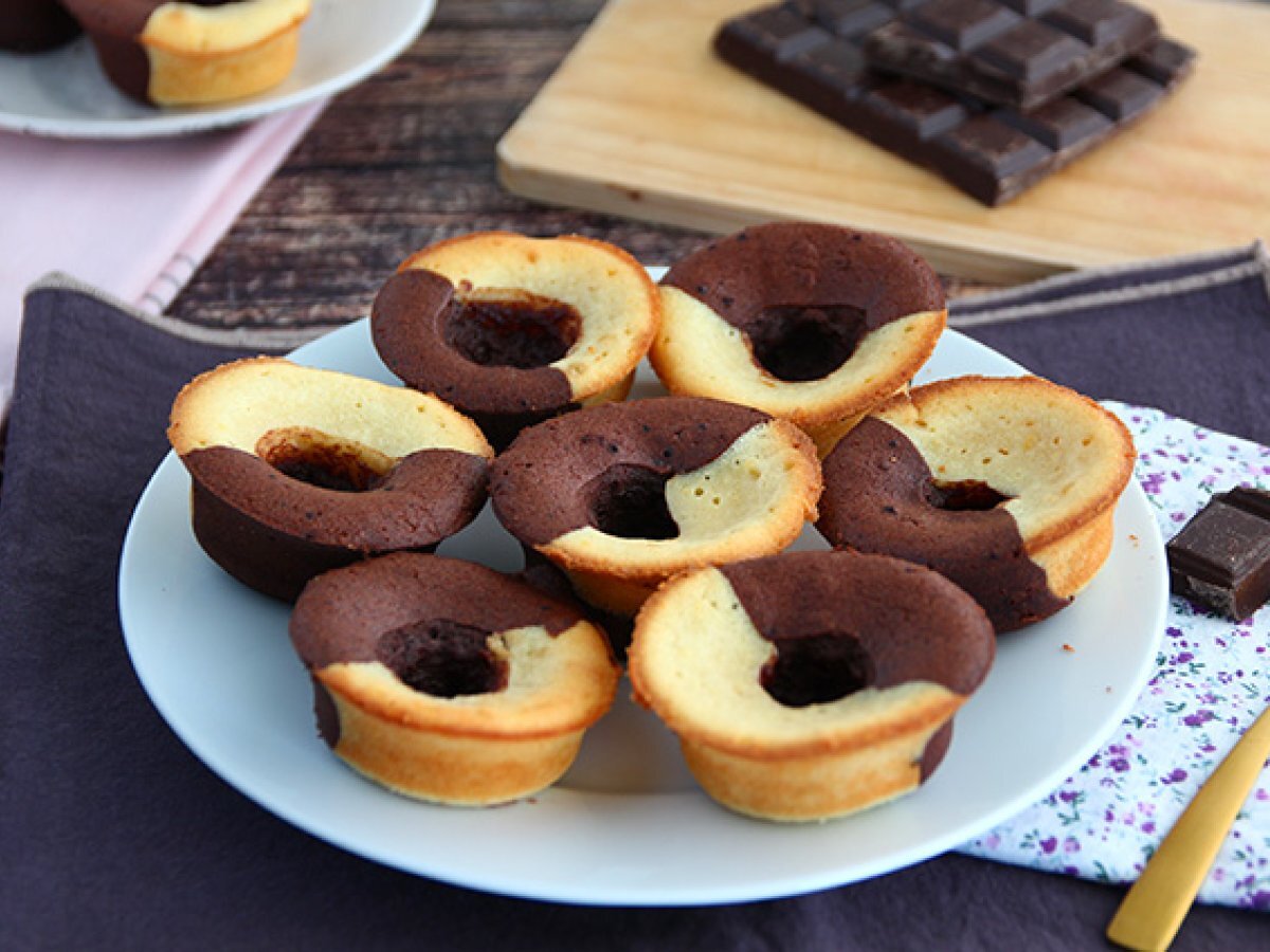 Muffin bicolore con cuore fondente al cioccolato