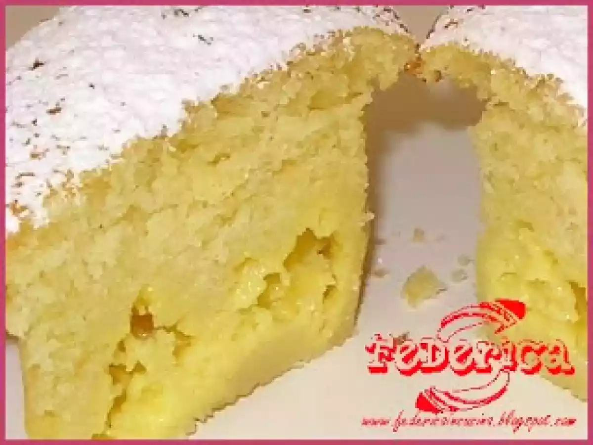 Muffin con crema pasticcera PrecedenteProssimo Dessertfacile50 min908 Kcal Invia questa ricetta ad un amico Stampa la ricetta Contatta l'autore della Ricetta Pubblica la foto di questa ricetta Muffin realmente originale per tutti. Ingredienti 4 250 g yogurt bianco 220 g farina con lievito 180 g zucchero 115 g burro morbido 2 uova buccia di limone Per la crema pasticcera: 2 uova intere 2 cucchiai di zucchero 2 cucchiai di farina 170 g panna fresca 130 g latte Costo stimato: 4.65Euros€ (1.16€/Porzioni)