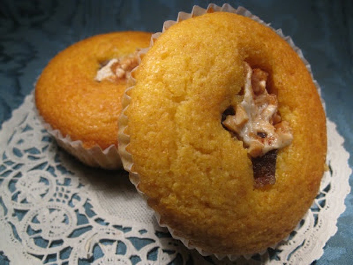 Muffin di farina gialla con marron glacè e torrone vota adesso PrecedenteProssimo Dessertfacile50 min Invia questa ricetta ad un amico Stampa la ricetta Contatta l'autore della Ricetta Pubblica la foto di questa ricetta Ingredienti 6 150 g di farina 00 150 g di farina di mais 12 g di lievito per dolci 1 pizzico di sale 1 bustina di vanillina 90 g di zucchero 2 uova 180 ml di latte 120 g di burro Qualche marron glacè Un pezzeto di torrone I pochi marrron glacè