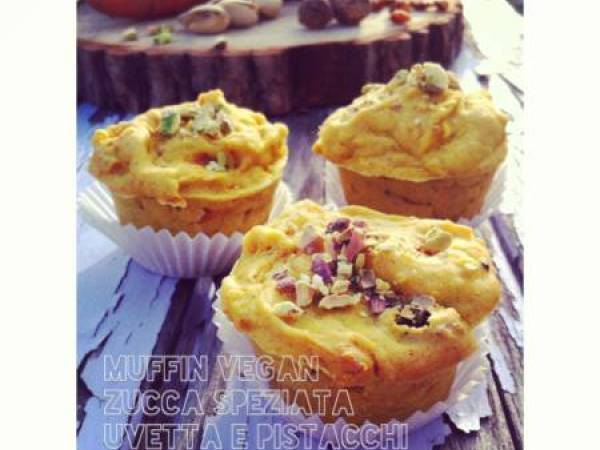 Muffin vegan alla zucca speziata, uvetta e pistacchi