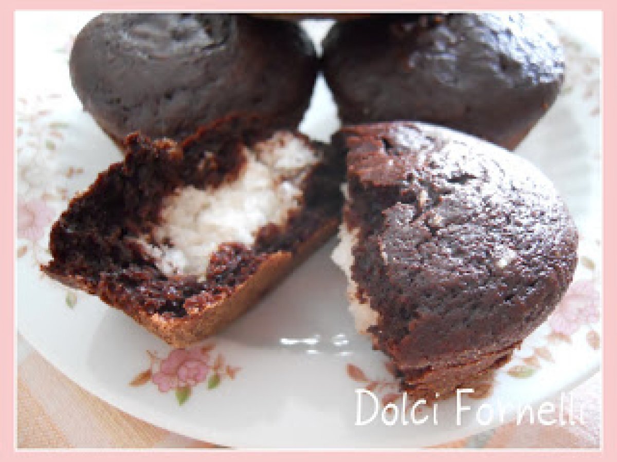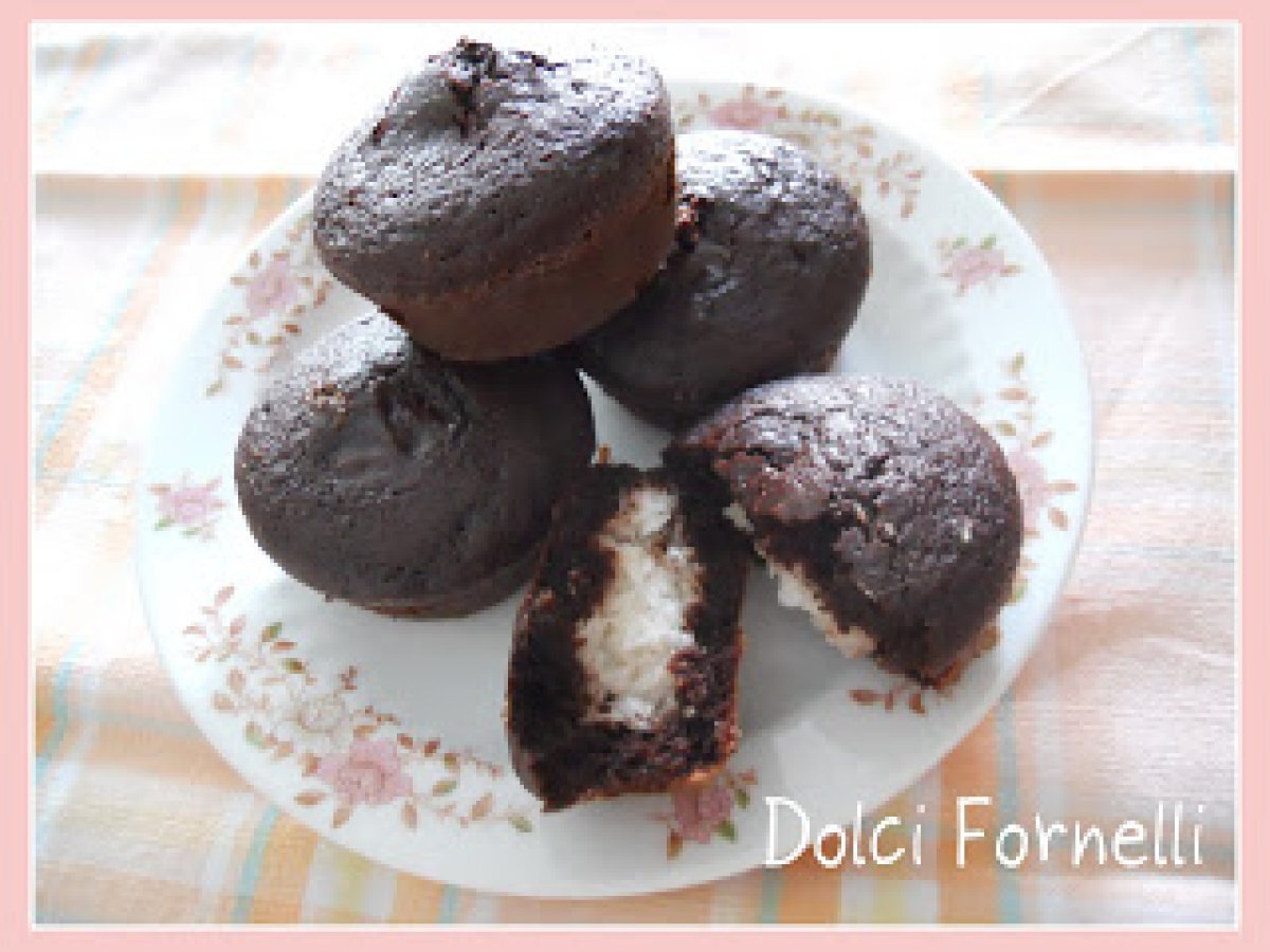 Muffins al cioccolato con ripieno al cocco PrecedenteProssimo Dessertfacile38 min Invia questa ricetta ad un amico Stampa la ricetta Contatta l'autore della Ricetta Pubblica la foto di questa ricetta Ingredienti 4 PER L'IMPASTO AL CIOCCOLATO: 2 uova intere 1 tuorlo 100 g di zucchero 40 g di cacao amaro 50 g di burro mezzo bicchiere di latte 75 g di farina una bustina di vanillina mezza bustina di lievito PER IL RIPIENO AL COCCO: 1 albume 100 g di farina di cocco 50 g di zucchero mezzo cucchiaio di fecola 2 cucchiai e mezzo di latte