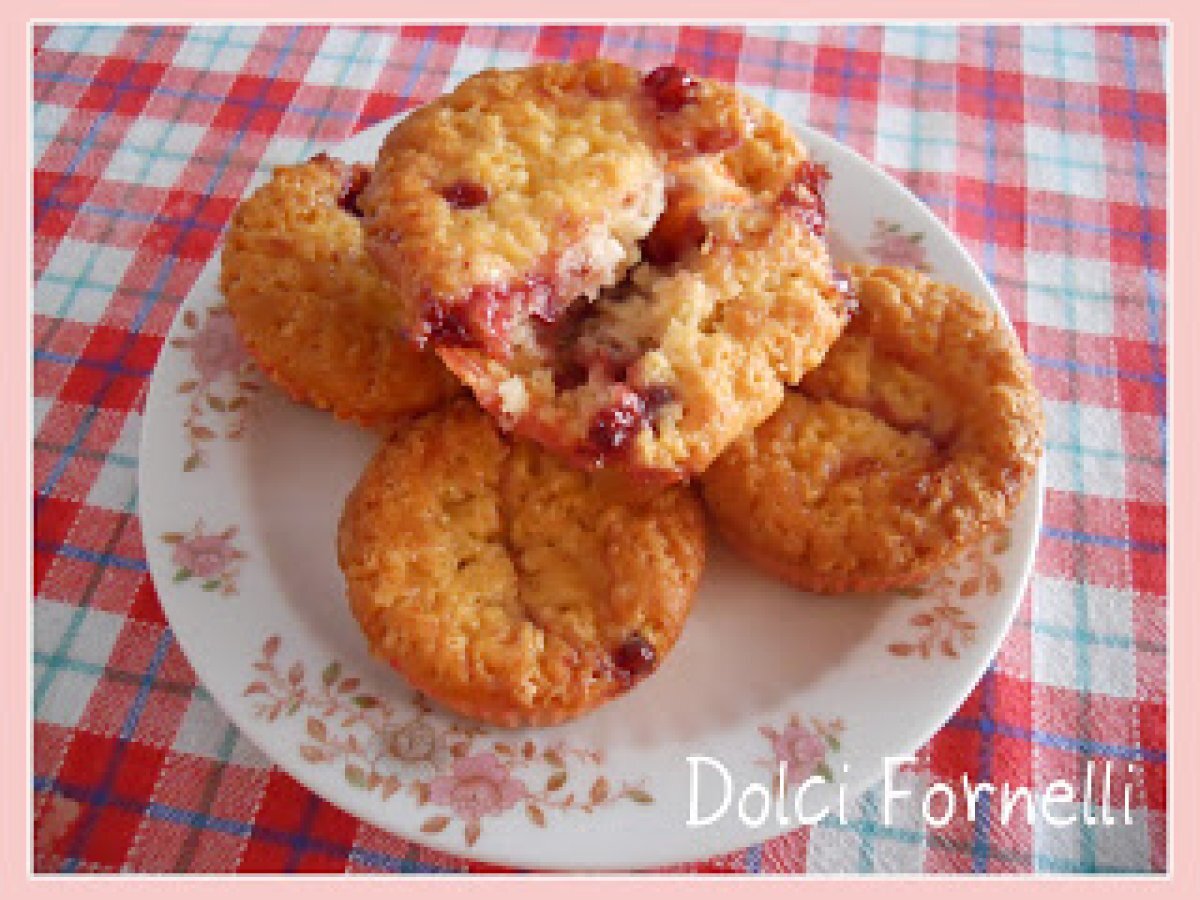Muffins allo yogurt con confettura di mirtilli rossi PrecedenteProssimo Dessertfacile55 min420 Kcal Invia questa ricetta ad un amico Stampa la ricetta Contatta l'autore della Ricetta Pubblica la foto di questa ricetta Ingredienti 3 125 gr di farina 00 40 gr di burro 1 bustina di vanillina 75 gr di zucchero di canna 125 gr di yogurt bianco intero 2 cucchiaini di lievito in polvere vanigliato 1 fialetta di aroma vaniglia latte q.b. confettura di mirtilli rossi q.b. Costo stimato: 1.29Euros€ (0.43€/Porzioni)