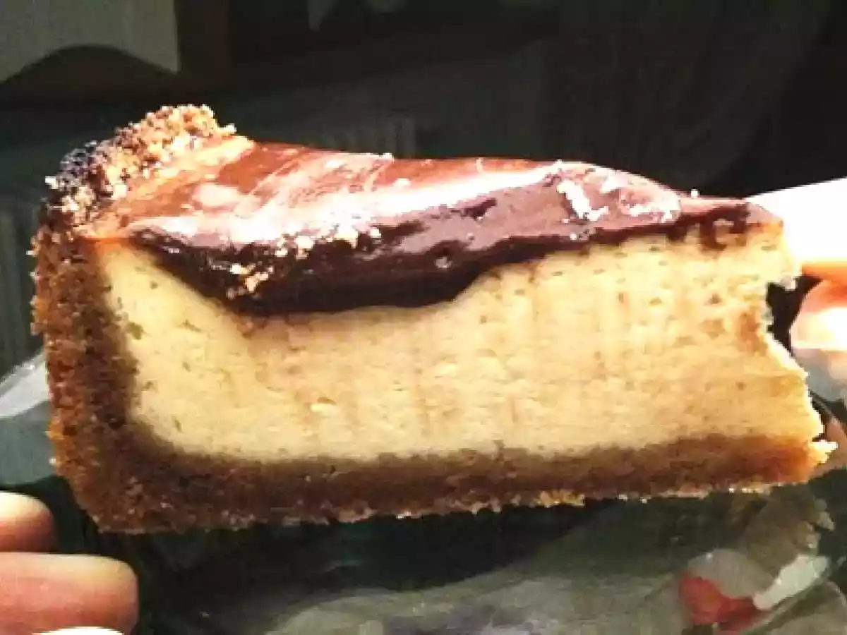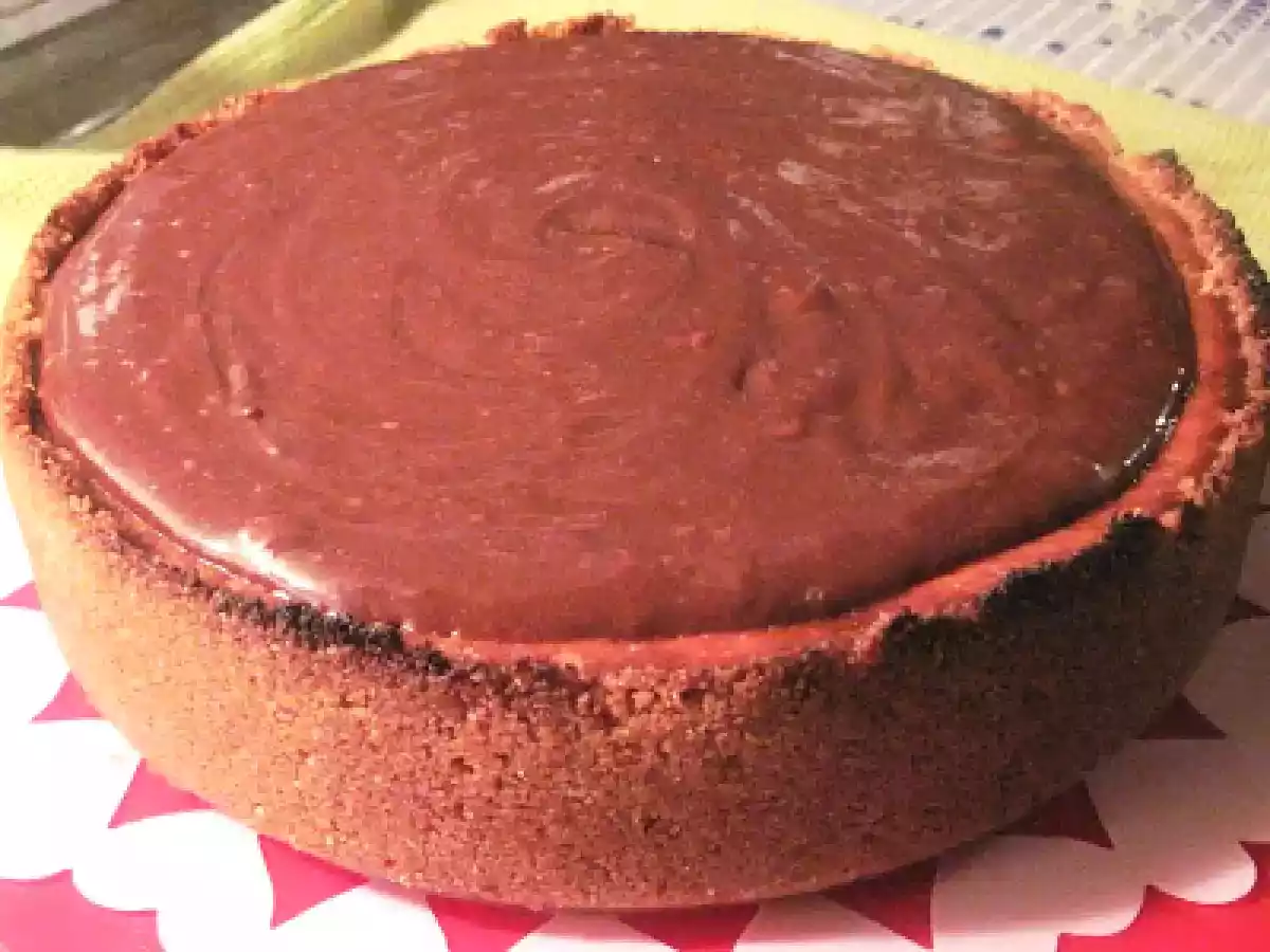 New york cheesecake golosissima ricetta vota adesso PrecedenteProssimo Dessertfacile1 h 25 m Invia questa ricetta ad un amico Stampa la ricetta Contatta l'autore della Ricetta Pubblica la foto di questa ricetta Ingredienti 6 300 gr di Digestive 120 gr di zucchero di canna 175 gr di burro 320 gr di Philadelphia 250 gr di ricotta 200 gr di zucchero semolato? 180 gr di panna acida 4 uova intere 1/2 cucchiaio da tè di farina bianca 1/2 cucchiaio di scorza di limone 1 goccia di essenza di vaniglia 4 cucchiai di Nutella 120 ml di panna fresca