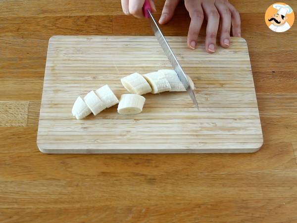 Tagliate le banane a pezzi, poi metteteli in una bustina del congelatore. Conservate in freezer per almeno 4 ore.
