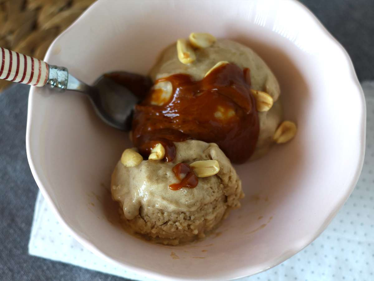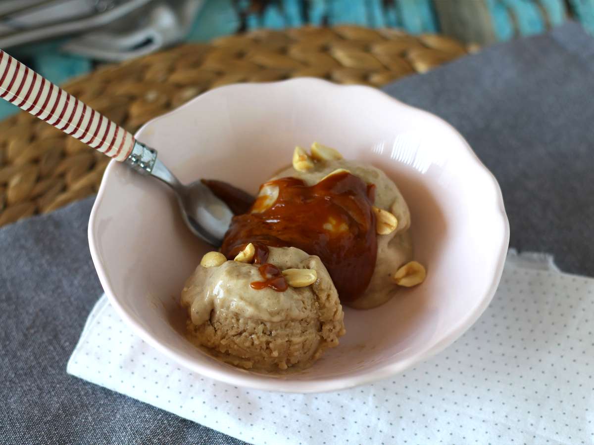 Non esitate ad aggiungere un topping per rendere questo gelato ancora più goloso, provate con del caramello al burro salato e degli arachidi
