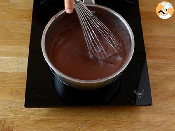 Adesso mettete il pentolino sul fuoco e portate ad ebollizione la preparazione mescolando con le fruste costantemente.