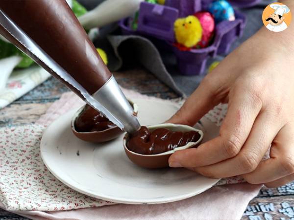Aprite gli ovetti kinder e riempite di crema ogni guscio.