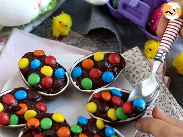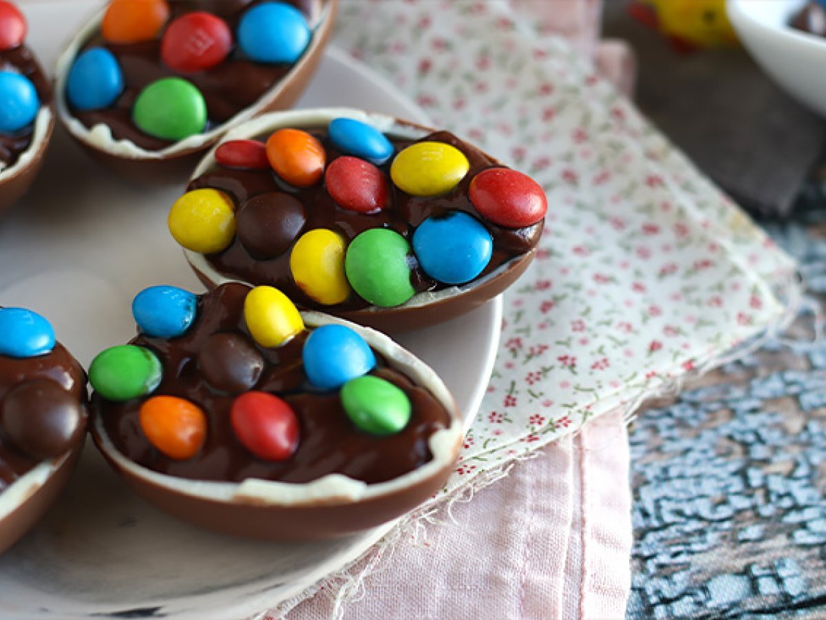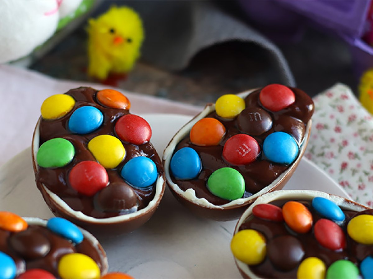 Ovetti di pasqua ripieni con crema al cioccolato e m&m's
