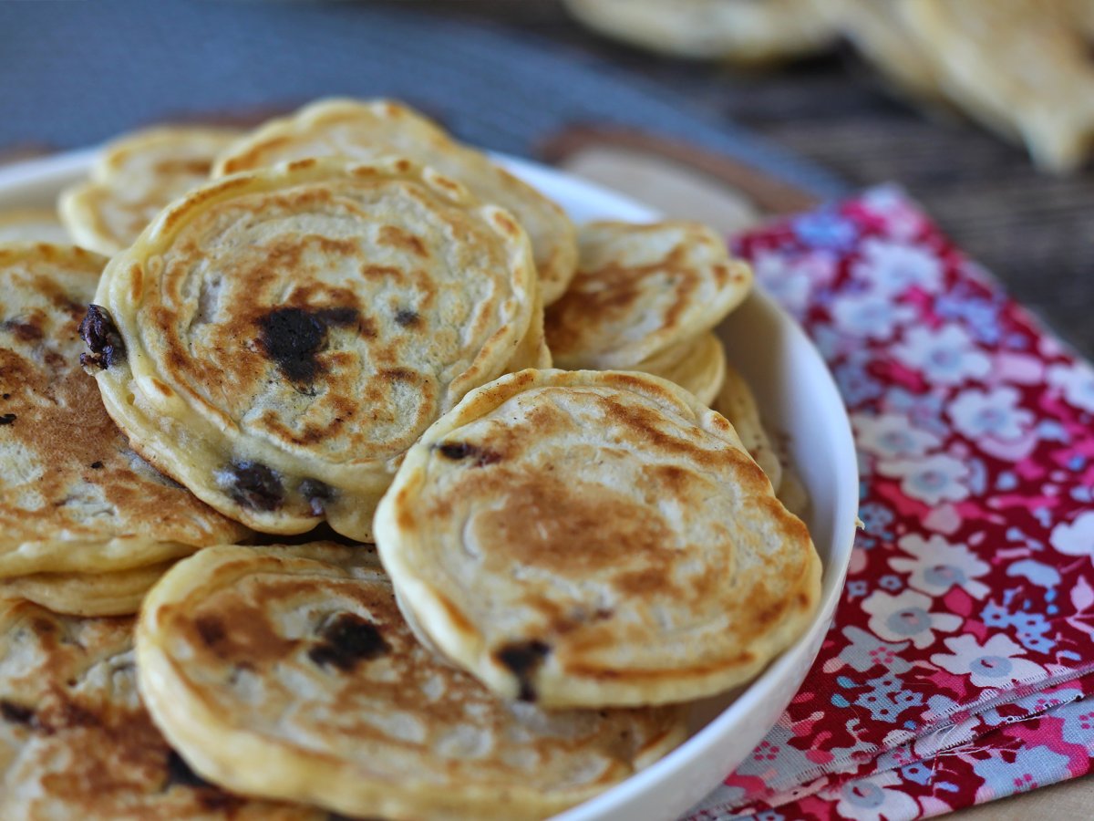 Girare i pancake e cuocerli per altri 2 minuti, verificando la cottura e prolungandola se necessario.