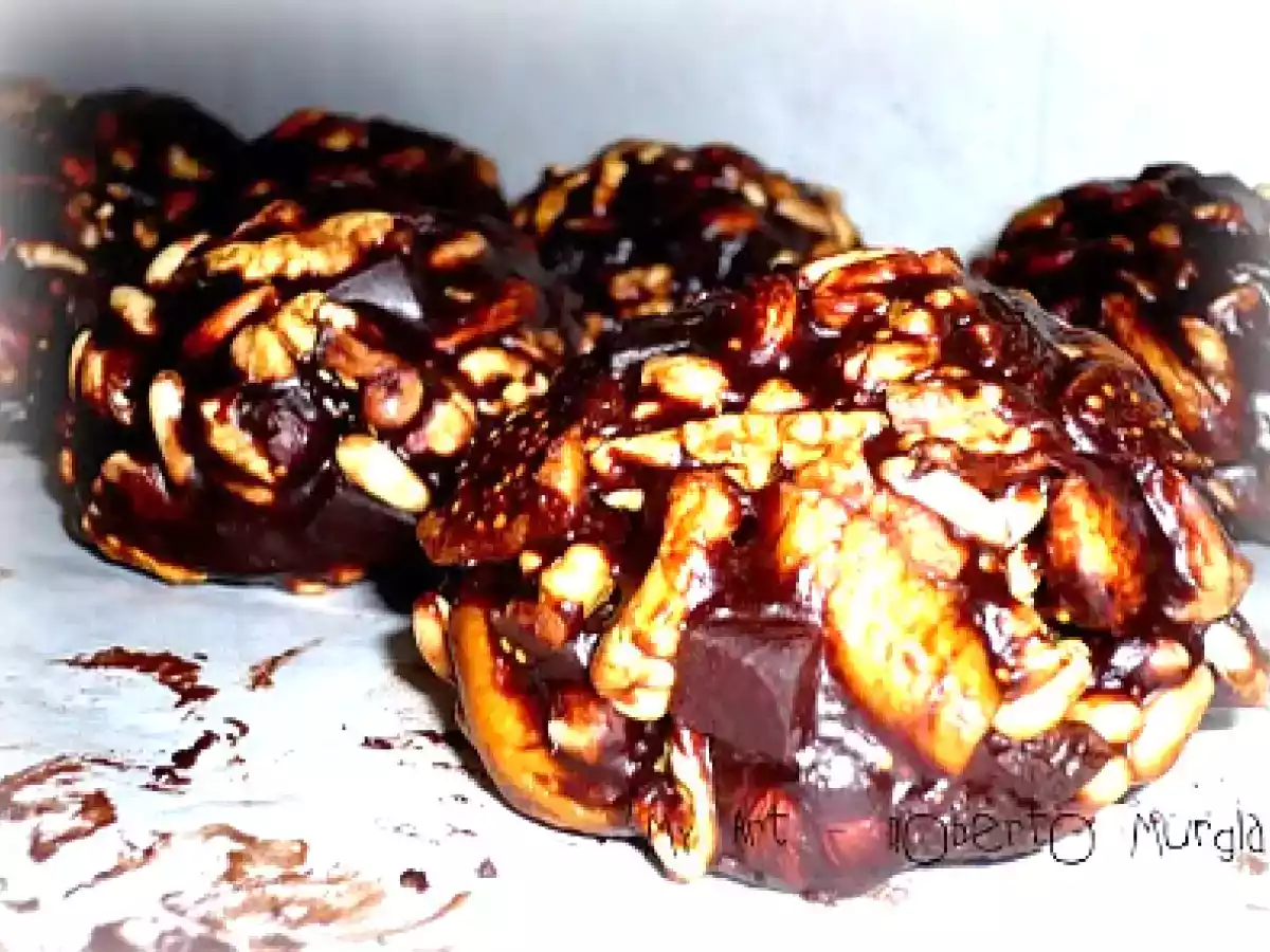 - Tagliate i fichi secchi a 4 parti e il cedro candito in cubetti. Grattuggiate il cioccolato fondente e versatelo in una ciotola dove avrete aggiunto il cacao in polvere e la farina.
