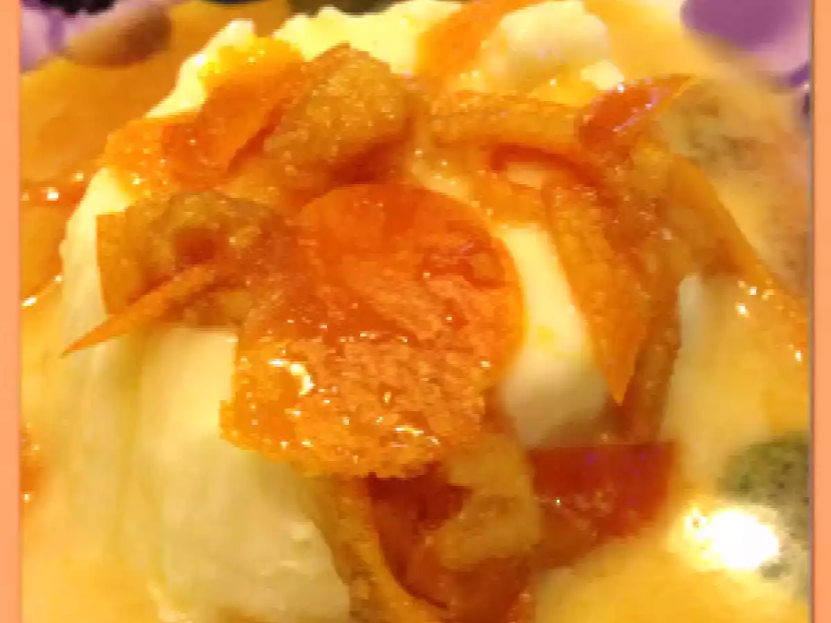 Panna cotta al grand marnier e bucce d'arancia PrecedenteProssimo Dessertfacile6 h 25 m Invia questa ricetta ad un amico Stampa la ricetta Contatta l'autore della Ricetta Pubblica la foto di questa ricetta Un sapore delicato in grado di coccolare tutti i sensi! Ingredienti 5 250 ml di panna fresca; 75 ml di latte; 62,5 g di zucchero; 4/6 g di colla di pesce; 1 bustina di vanillina; Grand Marnier q.b.; 1 cucchiaio di miele; 1 cucchiaino di Cherry; 2 cucchiaini di zucchero; la buccia tagliata a striscioline di 2 arance