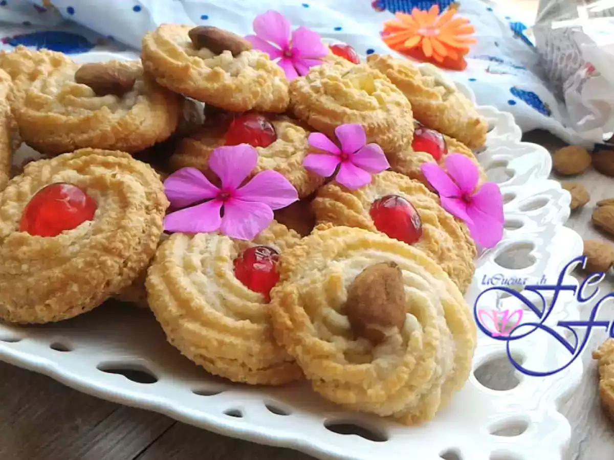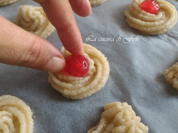 Oggi voglio proporvi questi meravigliosi dolci tradizionali della pasticceria siciliana! A dire il vero, questi dolcetti vengono ormai realizzati anche in altre regioni del sud Italia e in tante forme diverse. Tuttavia, i veri e originali sono i ricci di pasta di mandorle con sopra una deliziosa ciliegina candita o nella versione con una mandorla intera non pelata. Si preparano molto facilmente, basterà soltanto seguire tutti i consigli che lascio in ricetta e avere un po’ di dimestichezza con la sac-à-poche per sfornare dei biscotti davvero irresistibili! Saranno perfetti da accompagnare con il tè o come dolcetto di fine pasto col caffè! In più sono anche gluten free, provateli anche voi, ve ne innamorerete!