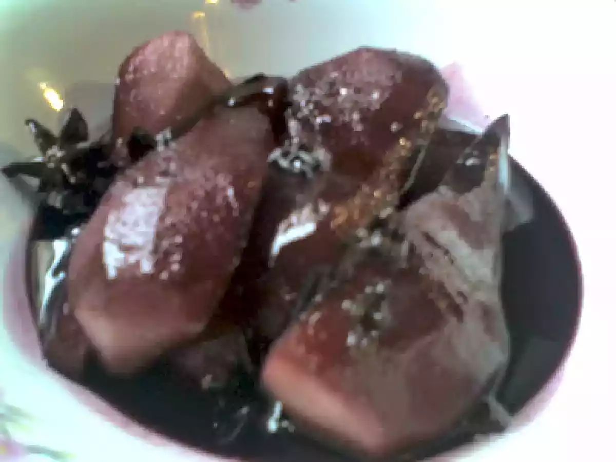 Pere al lambrusco dolce PrecedenteProssimo Dessertfacile16 min Invia questa ricetta ad un amico Stampa la ricetta Contatta l'autore della Ricetta Pubblica la foto di questa ricetta Si tratta di un dolce a base di pera, ed è molto buono. Ingredienti 4 4 pere Madernassa 4 cucchiai di zucchero 1/2 litro di vino Lambrusco dolce 3 chiodo di garofano 1 listella di cannella anice stellato