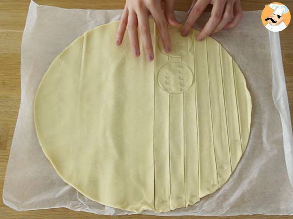 Tagliate delle strisce di pasta sfoglia e con l'aiuto di un coppapasta formate dei cerchi un po' più grandi della base delle pere. (Date un'occhiata al video per questo passaggio)