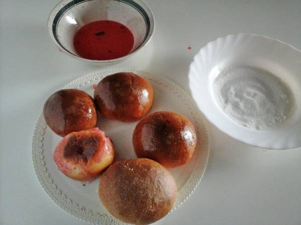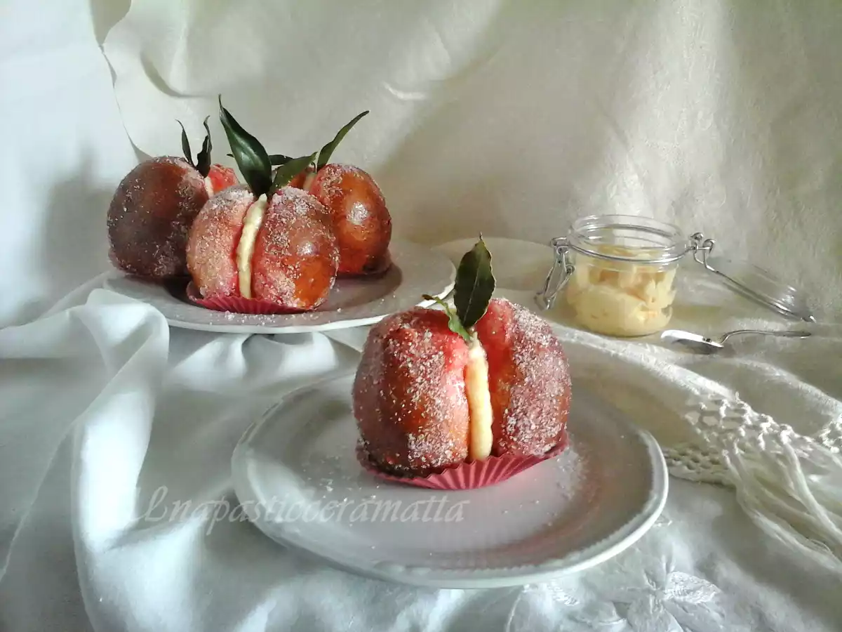 Ma cosa sono queste pesche dolci ? Si tratta di una specie di brioches imbevute nell’ Alchermes, liquore anch’esso di origine toscana, e poi farcite con crema pasticcera, una vera gioia per il palato veramente !