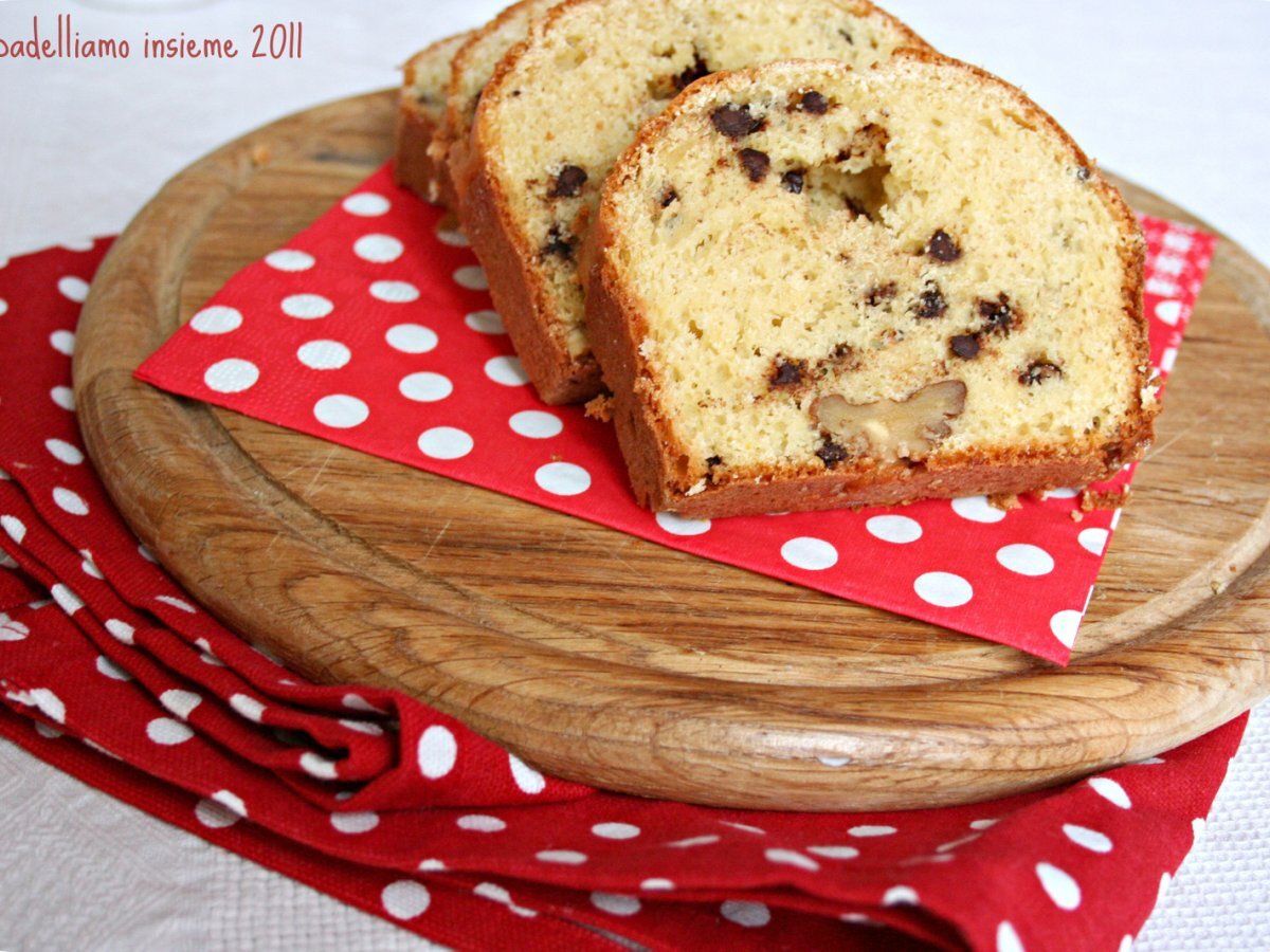 Plum cake con cioccolato e noci senza burro PrecedenteProssimo Dessertmedia50 min311 Kcal Invia questa ricetta ad un amico Stampa la ricetta Contatta l'autore della Ricetta Pubblica la foto di questa ricetta Ingredienti 6 180gr di farina 100gr di zucchero di canna 150ml di latte a temperatura ambiente 2 uova una bustina di vanillina metà stecca di cioccolato fondente fatta a pezzettoni due manciate di noci sgusciate 1 pizzico di sale 1/2 bustina di lievito per dolci Costo stimato: 2.23Euros€ (0.37€/Porzioni)