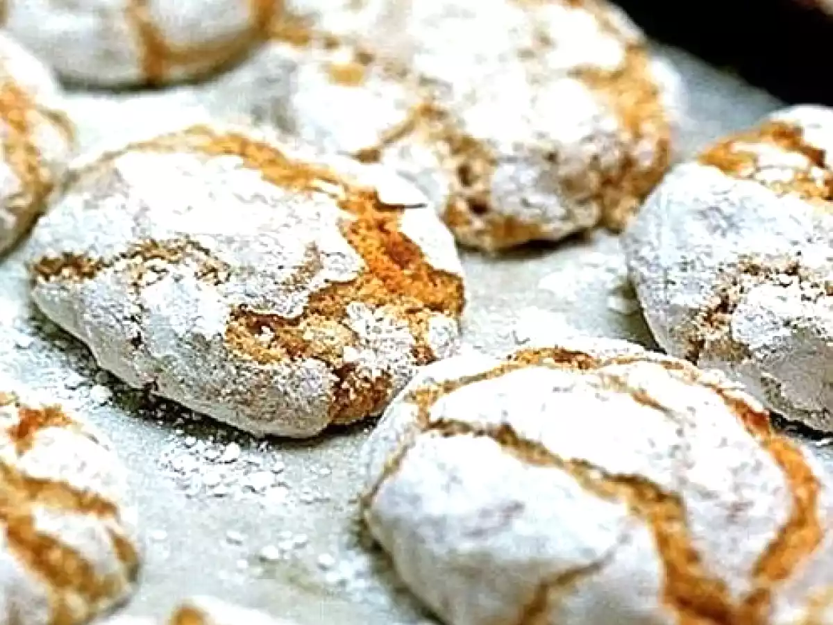 Cospargere con lo zucchero a velo setacciato e mettere in forno statico preriscaldato per 10 minuti a 110 gradi.