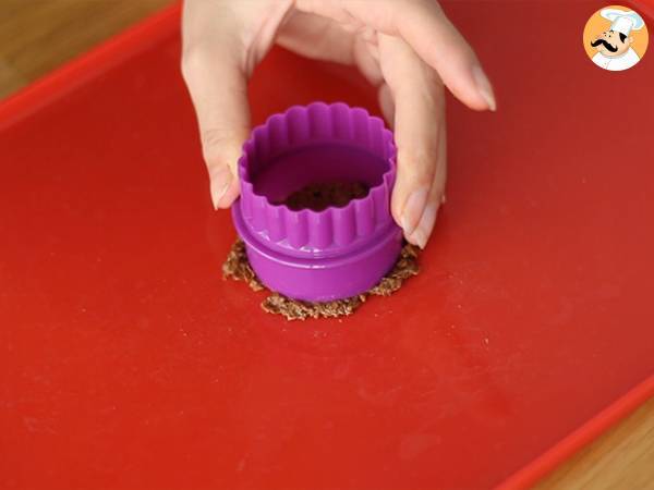 Subito dopo fate 6 piccoli cumuletti di questo composto sulla carta da forno (o sul silicone) e stendetele formando delle cerchi con lo stesso diametro delle semisfere che preparerete successivamente (utilizzate il coppapasta per essere più precisi). Quando i cerchi saranno pronti metteteli in frigorifero fino a quando li utilizzerete