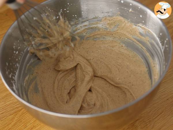Ora incorporate il pralinato alle nocciole e mescolate delicatamente aiutandovi con una frusta. Poi sciogliete la gelatina nella panna che avete riscaldato e aggiungete il tutto alla preparazione. Mettete la mousse in un sa à poche per utilizzarla immediatamente