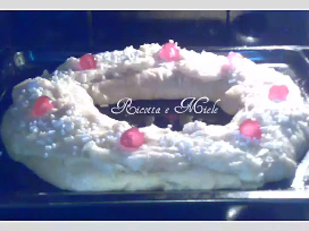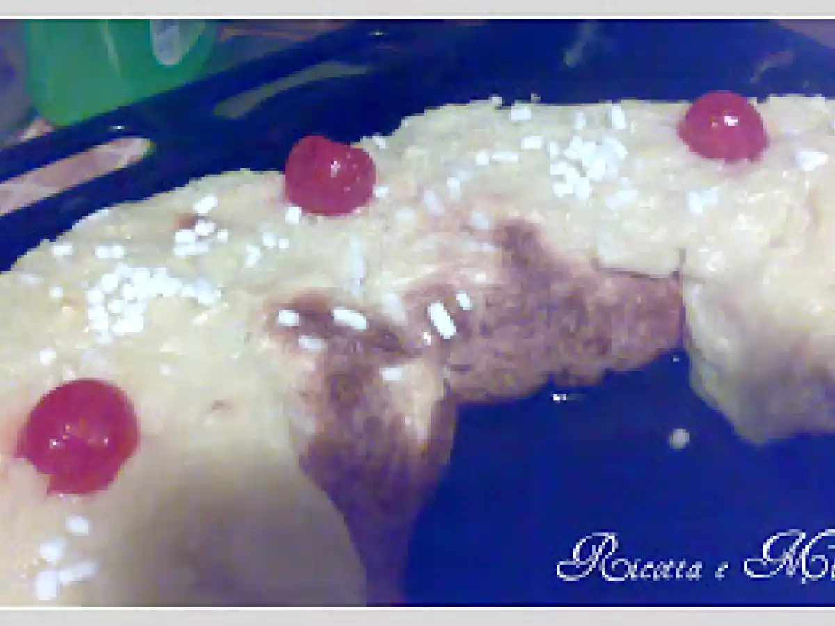 Rosca de pascua (ciambella pasquale) e premio PrecedenteProssimo Dessertfacile1 ora Invia questa ricetta ad un amico Stampa la ricetta Contatta l'autore della Ricetta Pubblica la foto di questa ricetta Concedetevi con questa ricetta torta. Ingredienti 8 500 g di farina 100 g di burro 100 g di zucchero 2 uova 1 tuorlo 30 g di lievito di birra Latte tiepido scorza grattugiata di 1 limone 1/2 cucchiaino di aroma fior d'arancio 1 uovo sbattuto Crema pasticcera molto densa: Granella di zucchero Ciliegie candite Crema pasticcera: 1/2 l di latte 150 g di zucchero Scorze di limone 3 tuorli 70 g di farina 1/2 bustina di vanillina