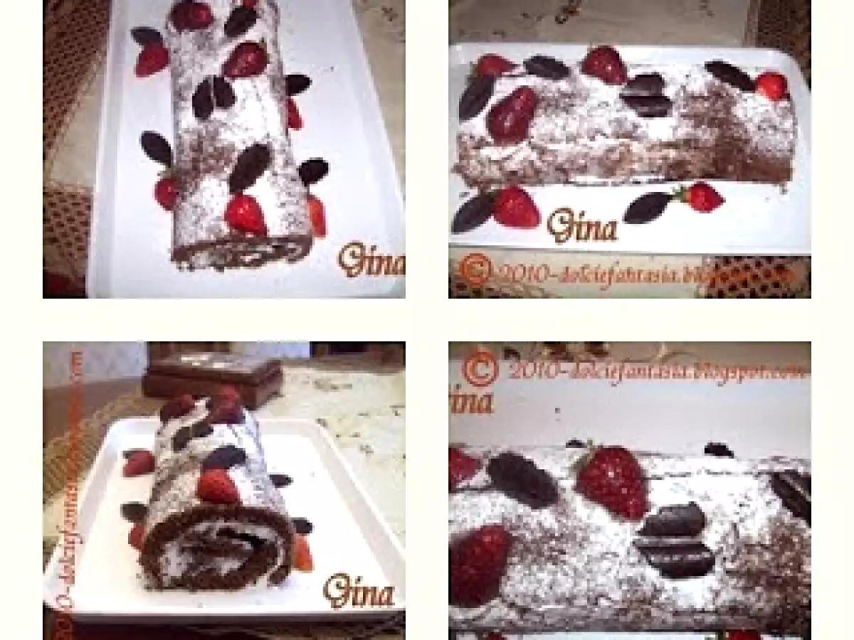 Rotolo al cioccolato panna e fragole PrecedenteProssimo Dessertfacile52 min Invia questa ricetta ad un amico Stampa la ricetta Contatta l'autore della Ricetta Pubblica la foto di questa ricetta Ingredienti 4 175 g di cioccolato fondente 6 uova 175 g di zucchero 120 g di farina 30 g di cacao amaro 1 bustina di vanillina Farcitura: Panna e fragole Decorazione: zucchero a velo foglie di cioccolato fragole