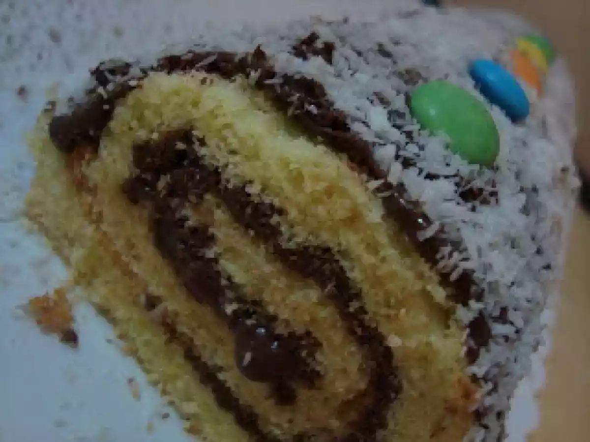 Rotolo alla nutella di silvia vota adesso PrecedenteProssimo Dessertfacile45 min1670 Kcal Invia questa ricetta ad un amico Stampa la ricetta Contatta l'autore della Ricetta Pubblica la foto di questa ricetta Ingredienti 2 100 g di farina 100 g di zucchero 4 uova la scorza di limone 1 pizzico di sale 1 fialetta di aroma limone per farcire e decorare: nutella e farina di cocco