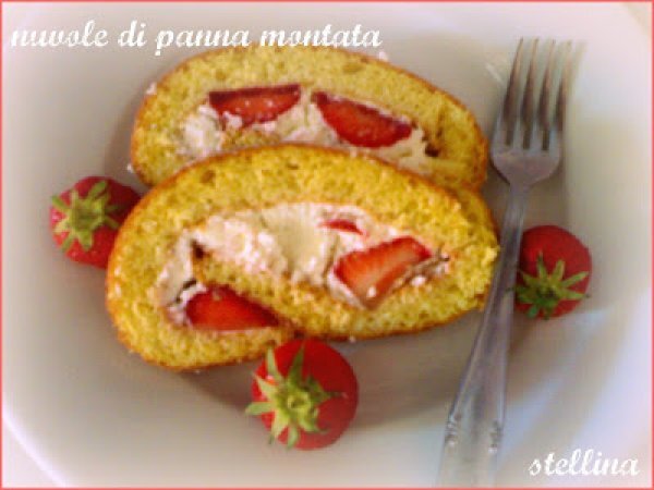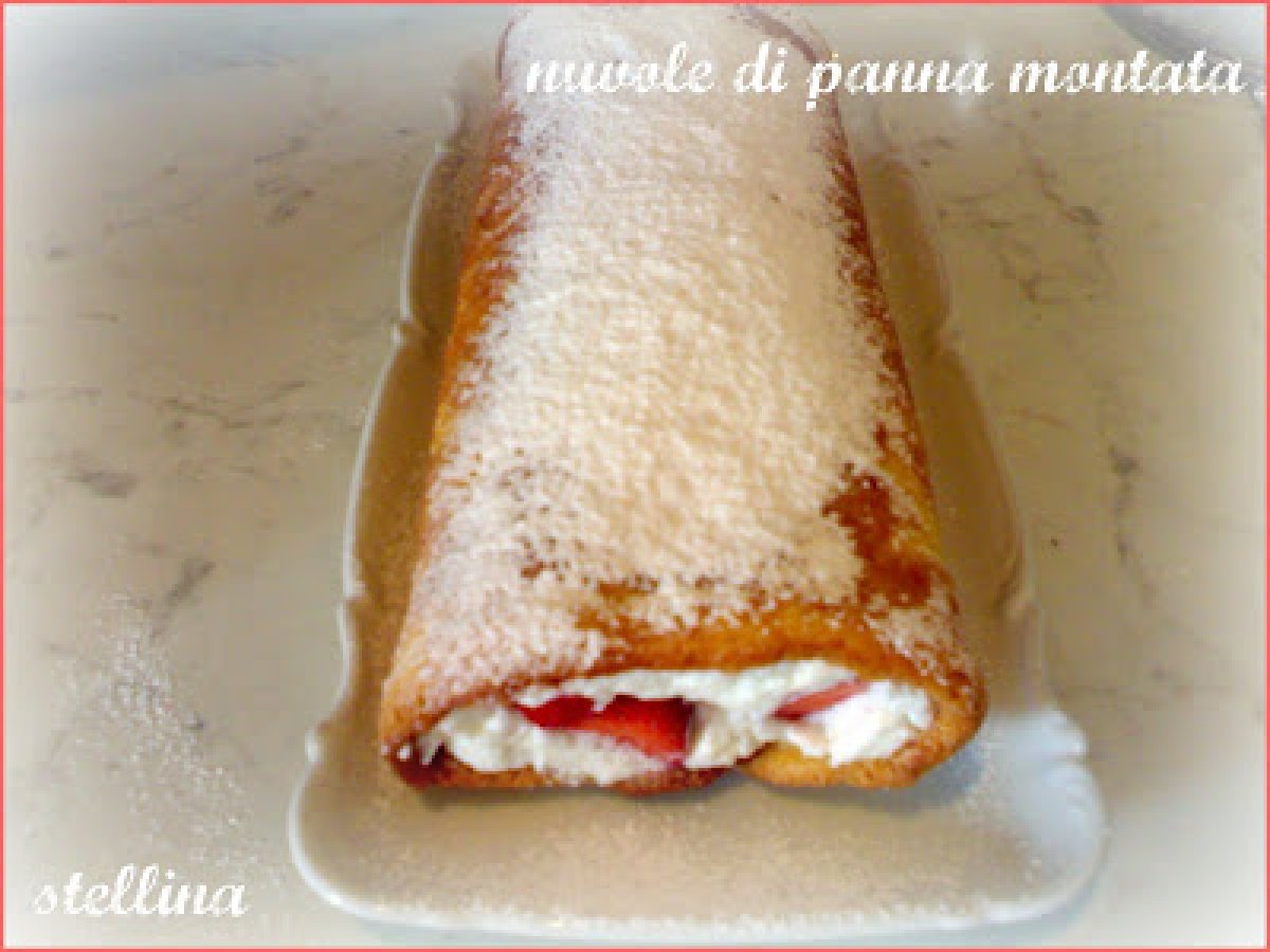 Rotolo di pan di spagna con panna e fragole PrecedenteProssimo Dessertfacile40 min484 Kcal Invia questa ricetta ad un amico Stampa la ricetta Contatta l'autore della Ricetta Pubblica la foto di questa ricetta Ingredienti 4 4 uova 70 g di zucchero 70 g di farina 250 ml di panna da montare 250 g di fragole zucchero a velo a piacere Costo stimato: 4.37Euros€ (1.09€/Porzioni)