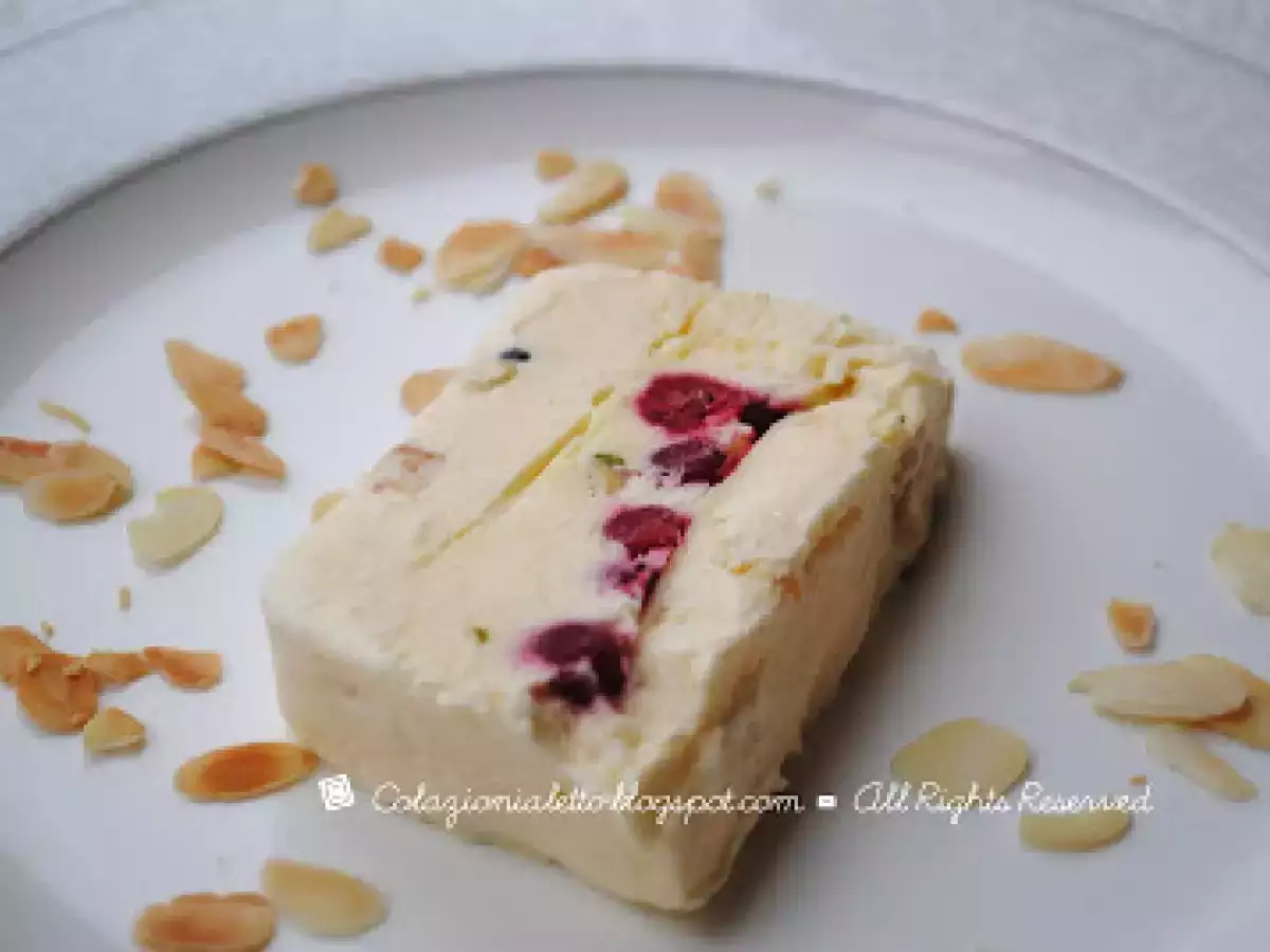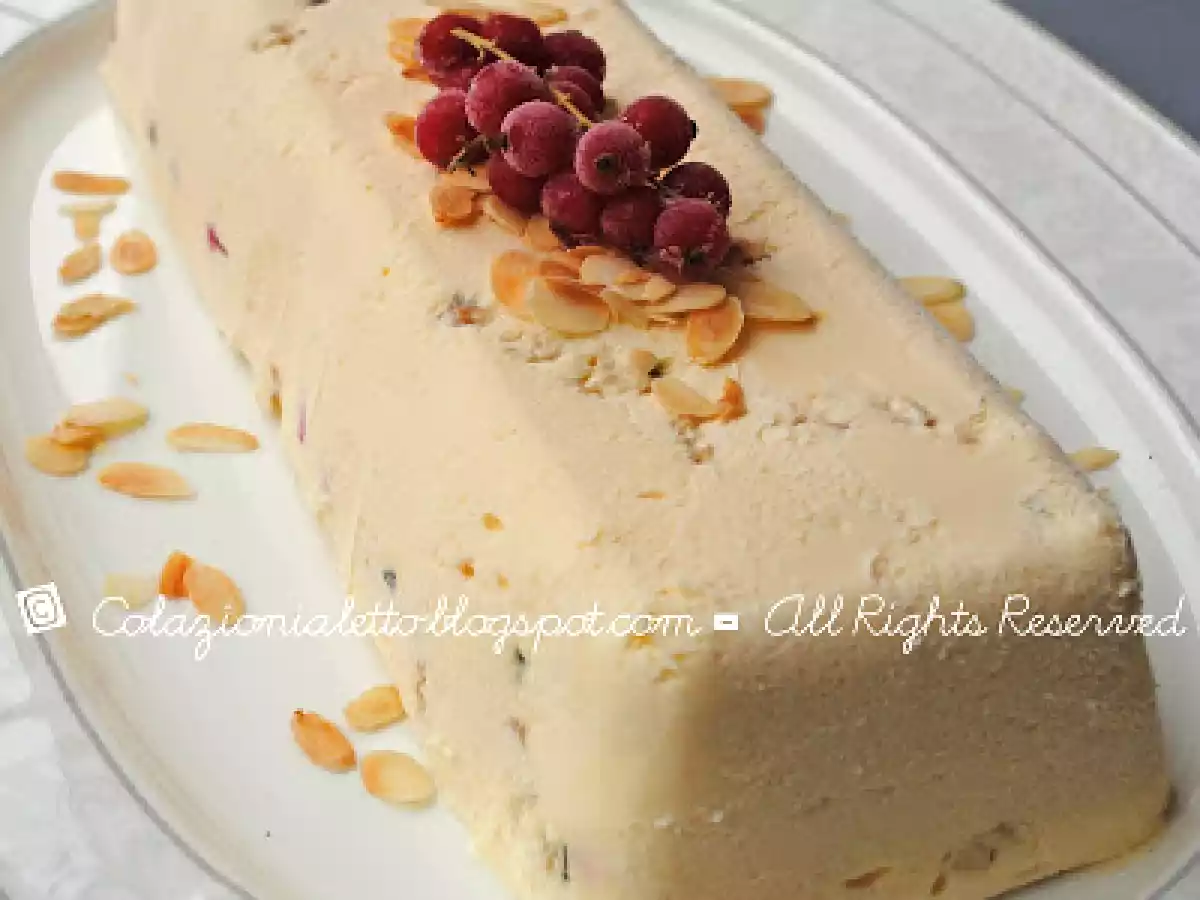 "semifreddo al torrone con sfoglia di cioccolato bianco e ribes" per le sorelle nurzia vota adesso PrecedenteProssimo Dessertfacile5 h 20 m Invia questa ricetta ad un amico Stampa la ricetta Contatta l'autore della Ricetta Pubblica la foto di questa ricetta Ingredienti 4 500 g mascarpone 3 uova 100 g zucchero 1 100 g torrone morbido alle mandorle e pistacchi delle Sorelle Nurzia 50 g cioccolato bianco 250 g ribes Per il decoro: mandorle a lamelle lievemente tostate 1 cucchiaio qualche ribes