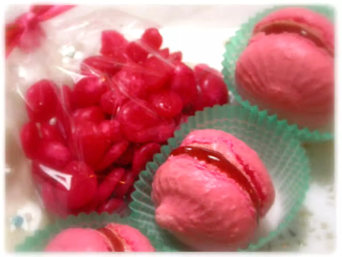 Simil macarons e ginevrine vota adesso PrecedenteProssimo Dessertfacile45 min Invia questa ricetta ad un amico Stampa la ricetta Contatta l'autore della Ricetta Pubblica la foto di questa ricetta Ingredienti 4 La ricetta delle "Ginevrine": 100 g di zucchero 2,5 cucchiai di acqua coloranti alimentari q.b. l'impasto : 100 g di farina di mandorle 100 g di zucchero a velo 80 g di albumi vecchi di 2-3 giorni 100 g di zucchero semolato 30 g di acqua colorante alimentare q.b. 100 g di marmellata di fragole per farcirli