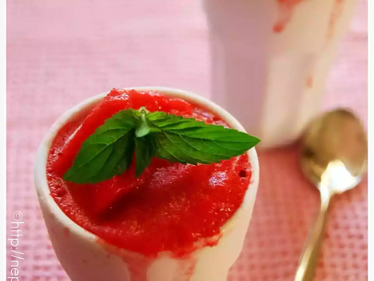 Sorbetto di fragole e menta vota adesso PrecedenteProssimo Dessertfacile20 min Invia questa ricetta ad un amico Stampa la ricetta Contatta l'autore della Ricetta Pubblica la foto di questa ricetta Ingredienti 4 300 g Acqua filtrata 180 g Zucchero 40 g Glucosio 600 g Fragole 10 foglie Menta 5 gocce Limone