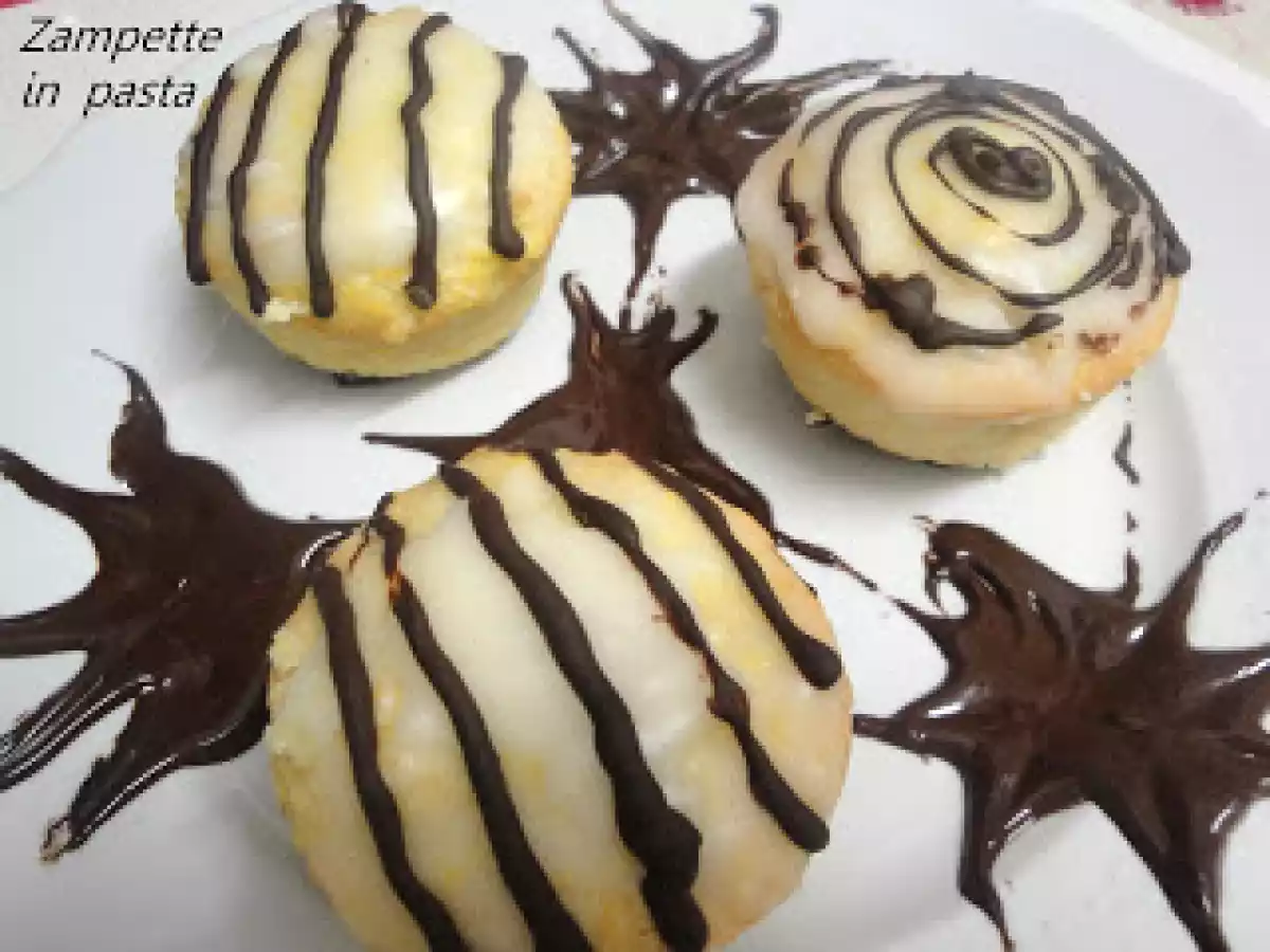 - Versate poi il composto in una sac a poche e riempite gli stampini fino quasi al bordo. Spolverate con zucchero a velo e infornate a 180° per 15 minuti.