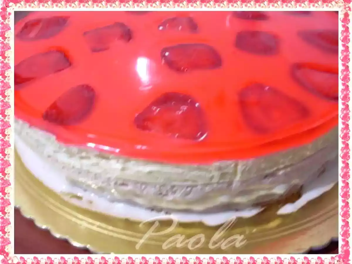 - Poi tagliare delle grosse fragole e le distribuire sulla superficie,e poi le coperire con la gelatina rossa .