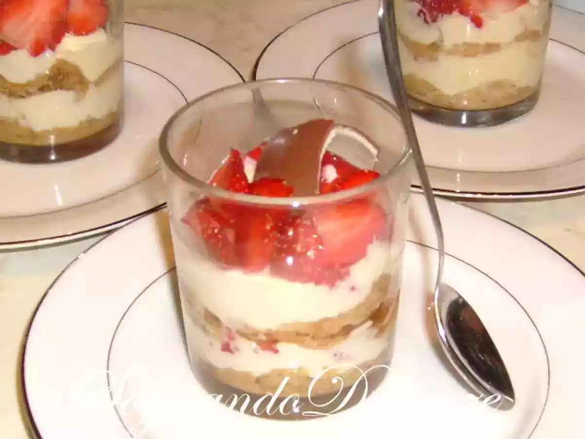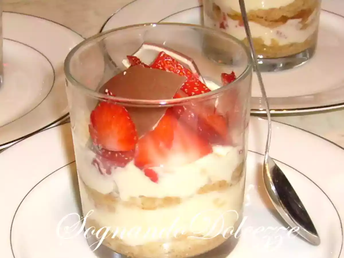 Tiramisù di fragole nel bicchiere PrecedenteProssimo Dessertmedia20 min Invia questa ricetta ad un amico Stampa la ricetta Contatta l'autore della Ricetta Pubblica la foto di questa ricetta Ingredienti 4 1 pacco di pavesini o savoiardi 250 g mascarpone 60 g zucchero 100 g cioccolato bianco 2 tazze caffè ristretto 1 bicchierino di acqua fragole Decorazione Fragole Cioccolato