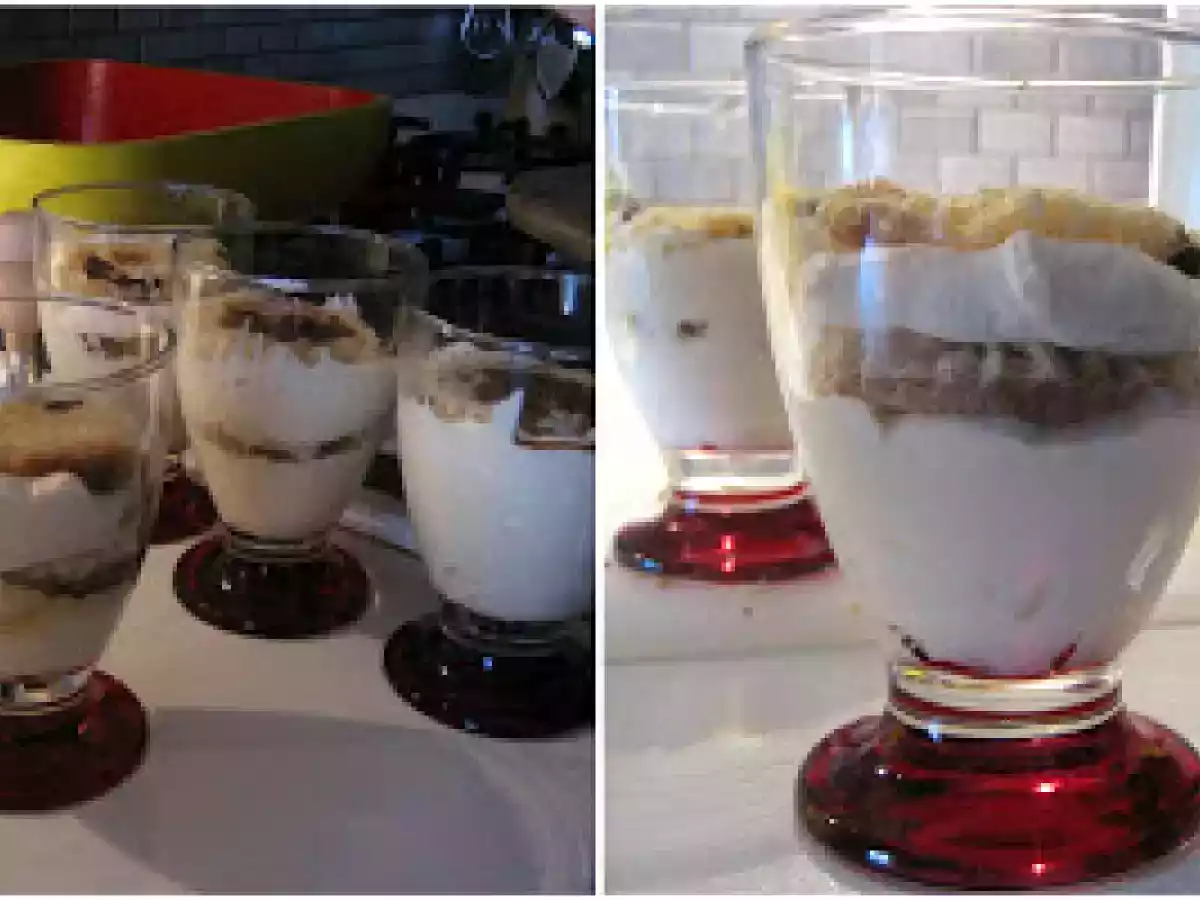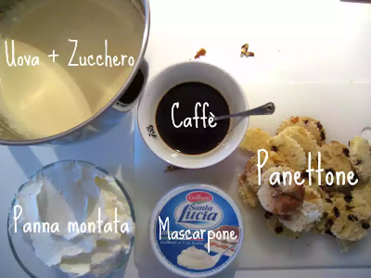Tiramisu' in coppa...con panettone vota adesso PrecedenteProssimo Dessertfacile3 ore Invia questa ricetta ad un amico Stampa la ricetta Contatta l'autore della Ricetta Pubblica la foto di questa ricetta Ingredienti 4 panettone qb 250 g di mascarpone 200 ml di panna fresca da montare 3 tuorli 3-4 cucchiai di zucchero 3 tazzine di caffè cacao amaro