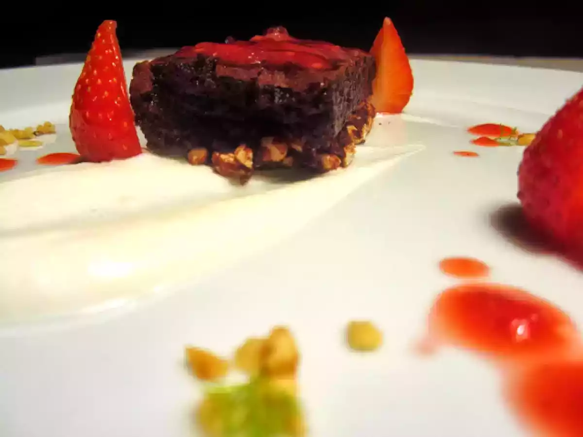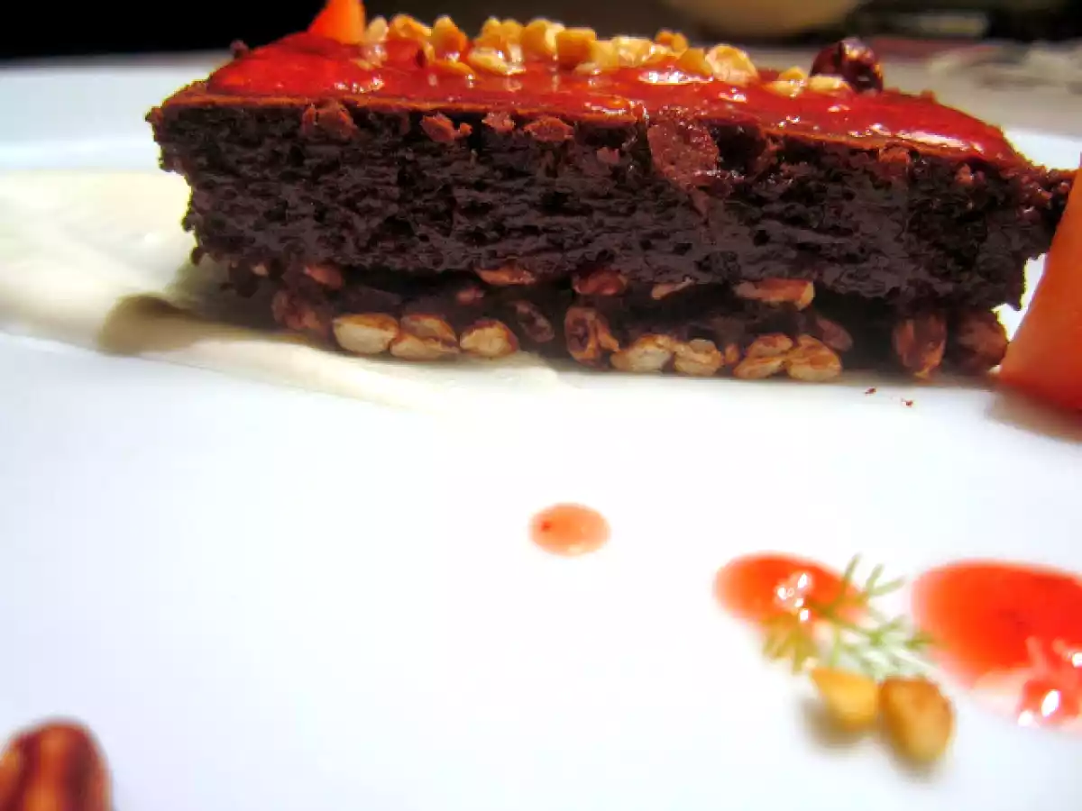 Direttamente dall' Australia ho imparato a realizzare al ristorante "The Point- Albert Park " di Melbourne questa splendida torta al cioccolato, con abbinamenti che spaziano dalla frutta alla crema panna, bilanciando delicatezza e croccantezza. E' una torta al cioccolato chiamata Nemesis. Ecco a voi la ricetta, la suddividerò un gruppi così da facilitarvi i passaggi di preparazione e non confondere nulla.