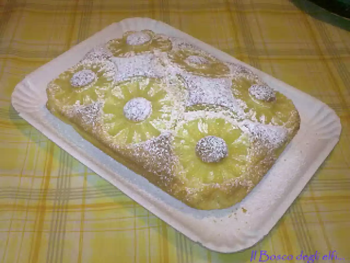 Torta all'ananas affondato Dessertfacile1 ora917 Kcal Invia questa ricetta ad un amico Stampa la ricetta Contatta l'autore della Ricetta Pubblica la foto di questa ricetta Ingredienti 4 200 g di farina 00 2 uova 100 g di zucchero 1 confezione di panna da cucina 1 bustina di lievito 4 cucchiai di olio di semi 1 confezione di ananas zucchero al velo Costo stimato: 4.66Euros€ (1.17€/Porzioni)