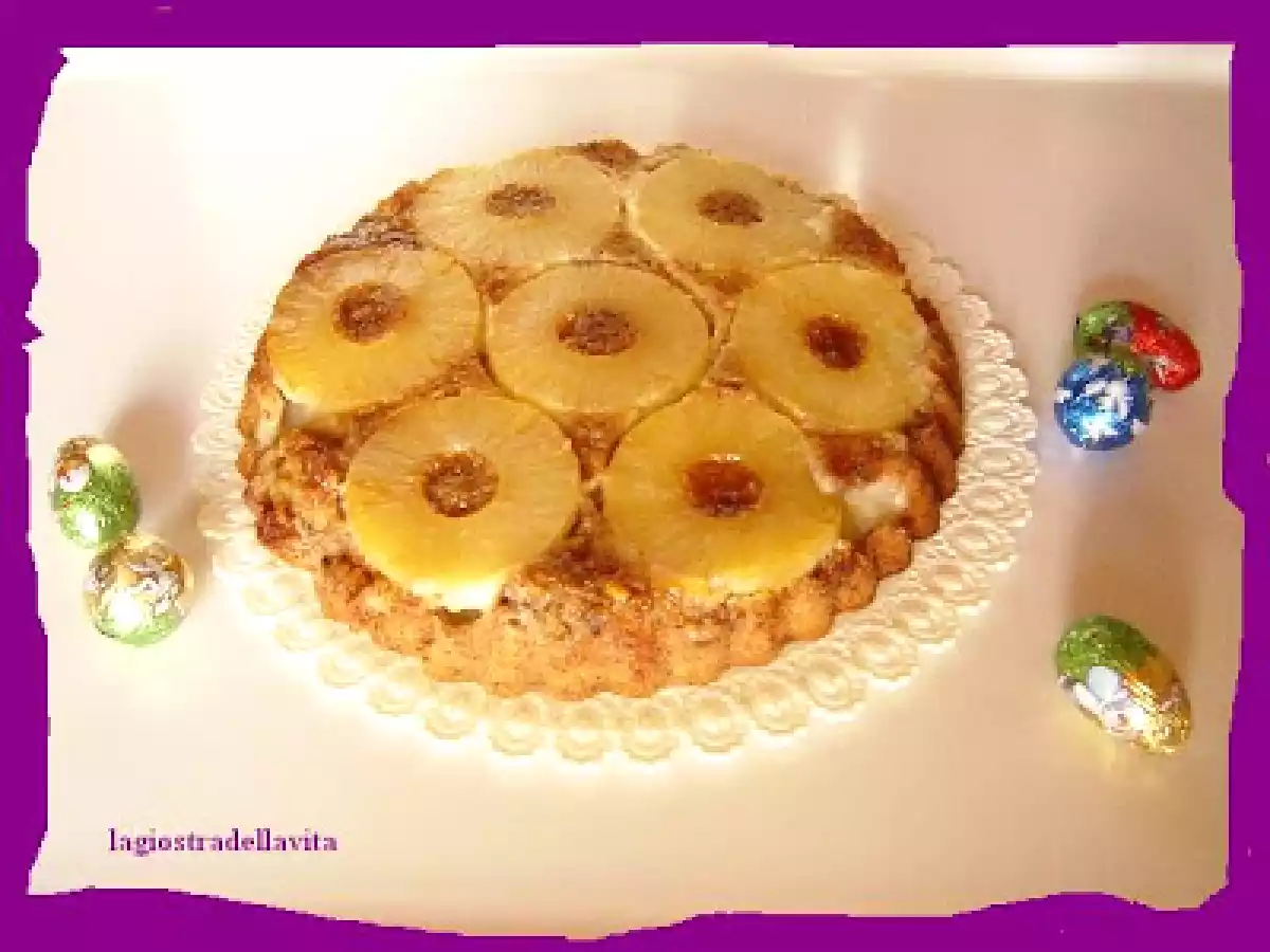 Torta all'ananas caramellato con crema pasticcera Dessertfacile55 min996 Kcal Invia questa ricetta ad un amico Stampa la ricetta Contatta l'autore della Ricetta Pubblica la foto di questa ricetta Ingredienti 4 3 uova 6 cucchiai di farina 00 6 cucchiai di zucchero 1 dscatola di ananas sciroppato 2 cucchiaini di lievito per dolci 200 g di noci 150 g di burro 500 ml di crema pasticcera
