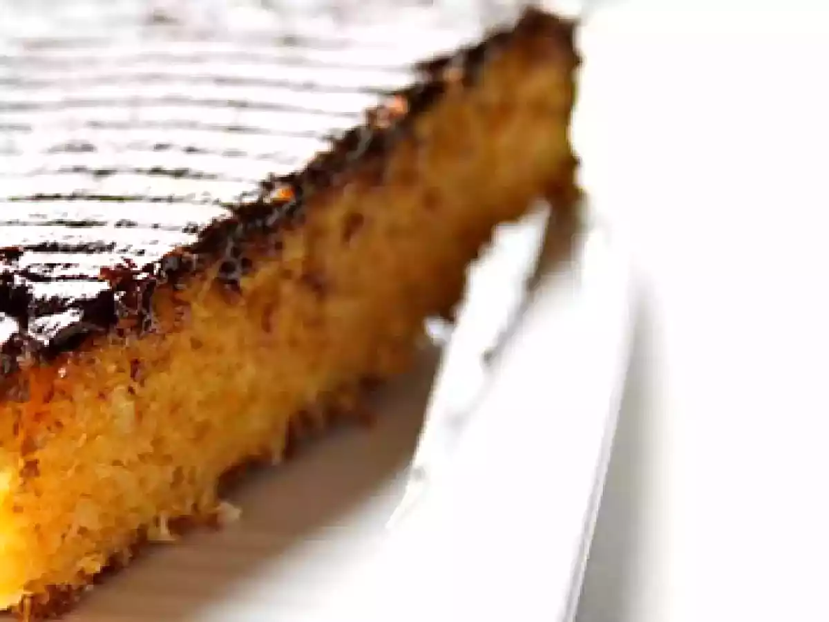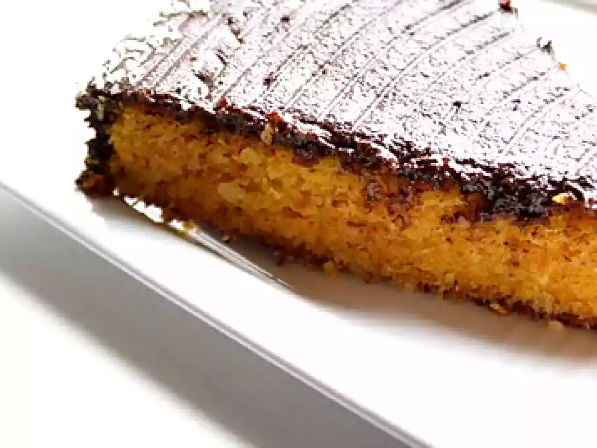 Torta alle carote, cocco e mandorle, glassata al cioccolato