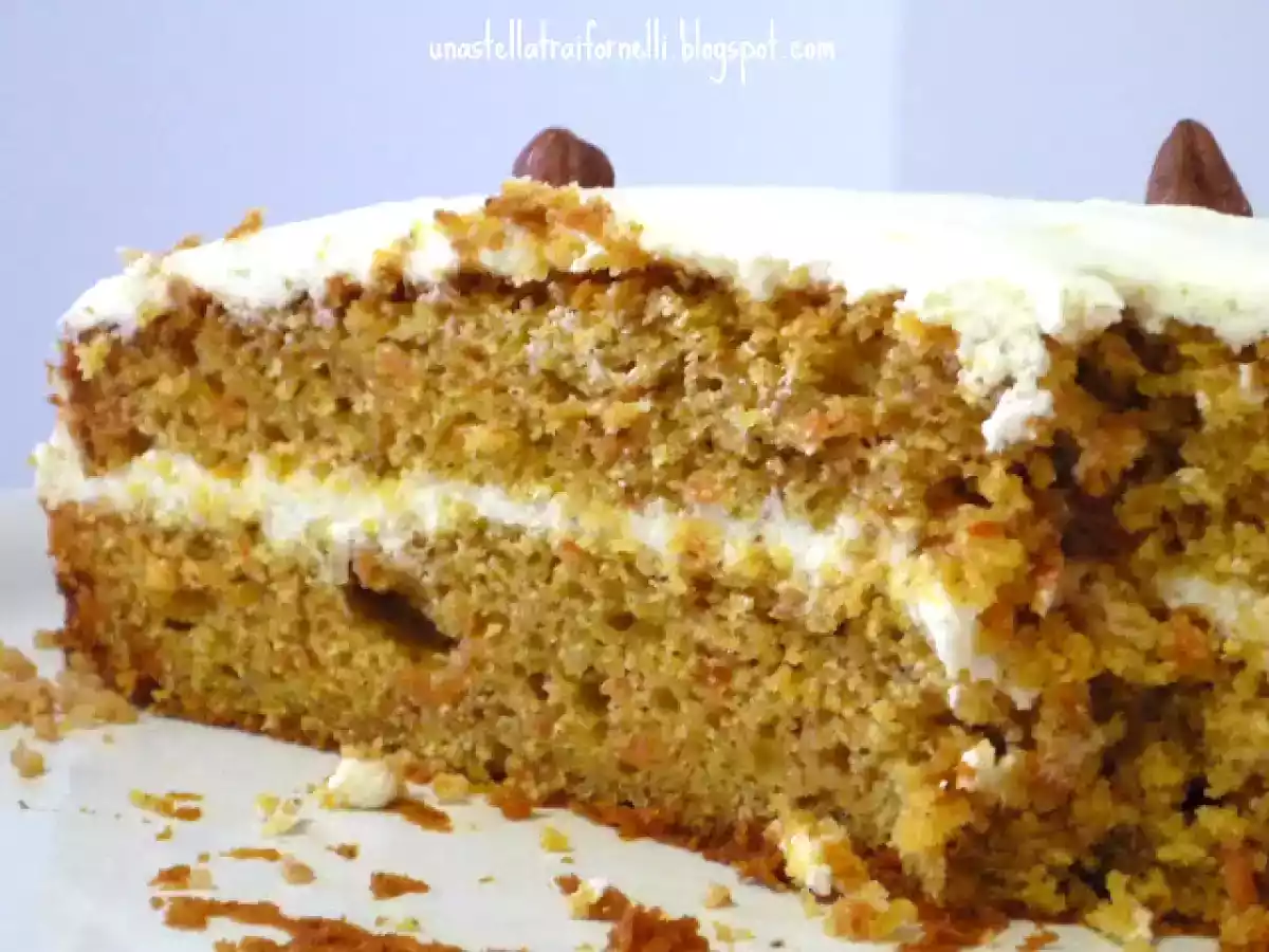 Torta alle carote e nocciole con crema al cioccolato bianco