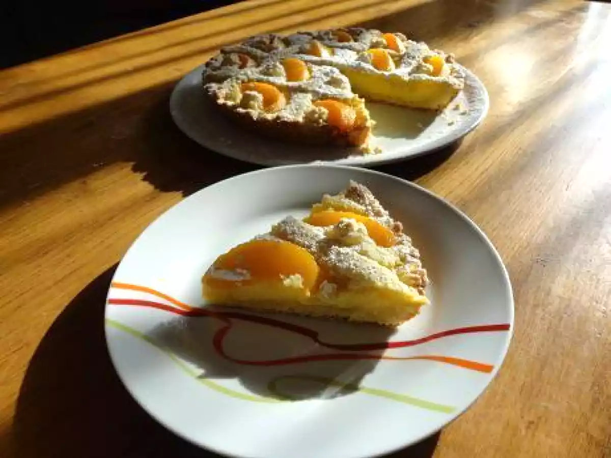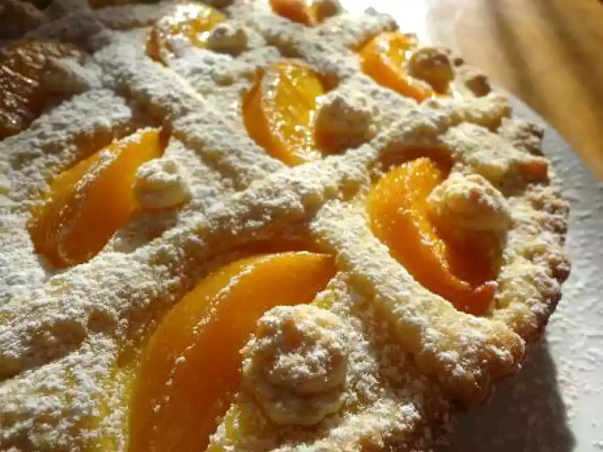 Torta alle pesche sciroppate PrecedenteProssimo DessertDifficile1 h 30 m2643 Kcal Invia questa ricetta ad un amico Stampa la ricetta Contatta l'autore della Ricetta Pubblica la foto di questa ricetta Ingredienti 8 Per la frolla: 250 g di farina manitoba Rosignoli Molini; 2 tuorli e un albume; 100 gi zucchero; 100 d burro; un pizzico di sale; un pizzico di lievito; Per la crema: 4 tuorli; 80 g di zucchero; 35 g farina; 1 noce di burro; 1 scorza di limone; 150 ml latte; 100 ml sciroppo Per decorare: Pesche sciroppate; zucchero a velo.