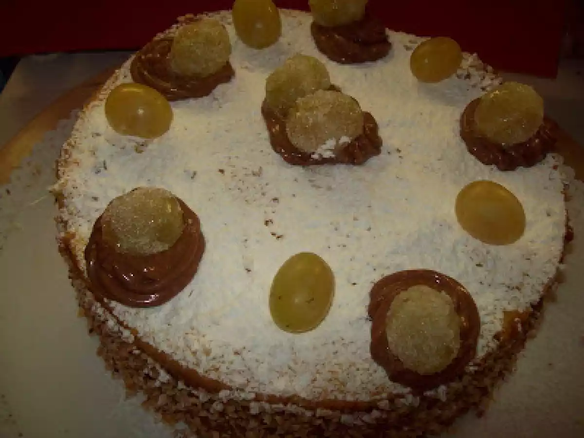 Torta allo zabaione PrecedenteProssimo Dessertfacile1 ora Invia questa ricetta ad un amico Stampa la ricetta Contatta l'autore della Ricetta Pubblica la foto di questa ricetta Ingredienti 5 6 uova 190 g di zucchero 190 g di fecola 1 bustina di lievito scorza di limone o vaniglia Farcia: 150 g tuorli 150 g zucchero 300 g marsala 6 g colla di pesce 500 g mascarpone 120 g zucchero a velo 25 g cacao