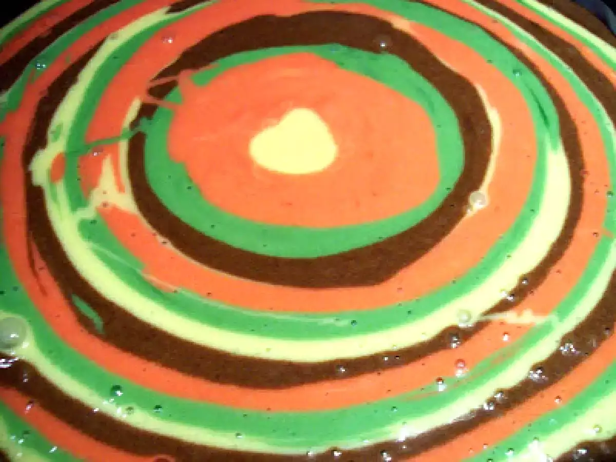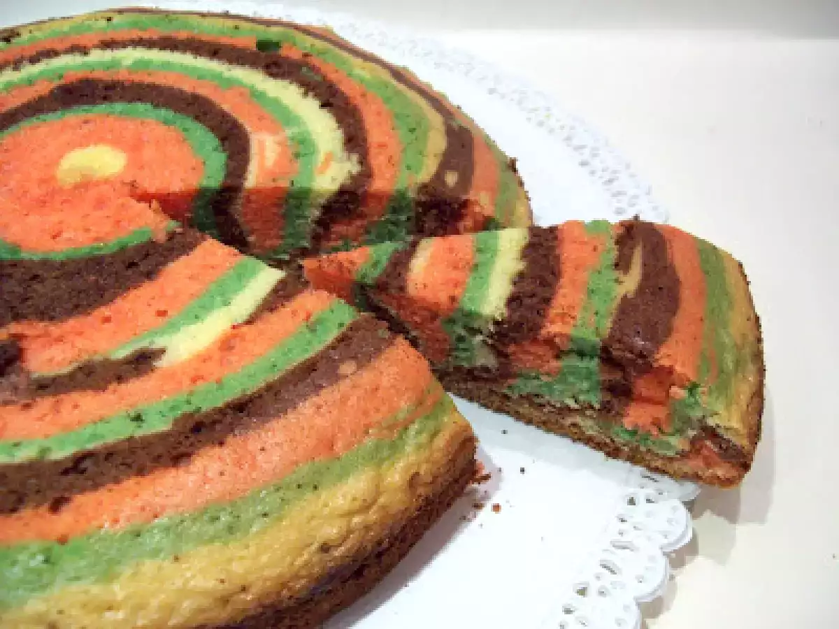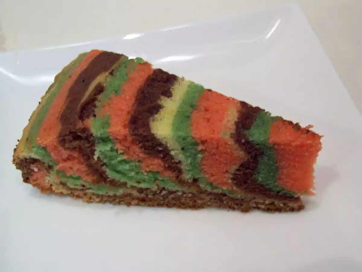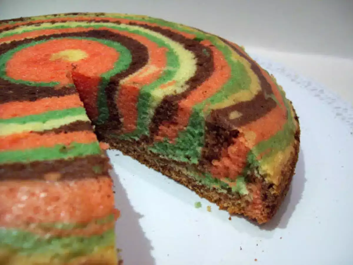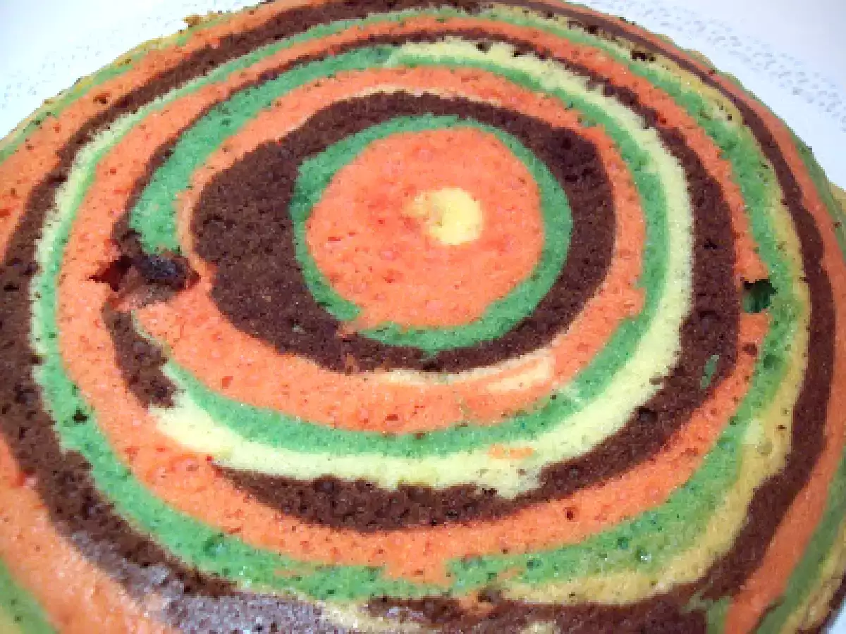 Torta arcobaleno PrecedenteProssimo Dessertfacile1 h 5 m Invia questa ricetta ad un amico Stampa la ricetta Contatta l'autore della Ricetta Pubblica la foto di questa ricetta Ingredienti 5 3 uova 150 g di zucchero 200 g di farina 00 100 ml di olio di semi 80 ml di acqua o latte 2 cucchiaini di lievito per dolci 1 bustina di vanilina coloranti alimentari cacao in polvere