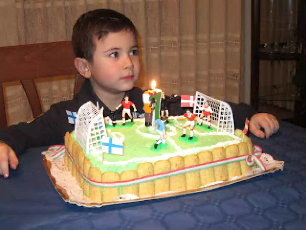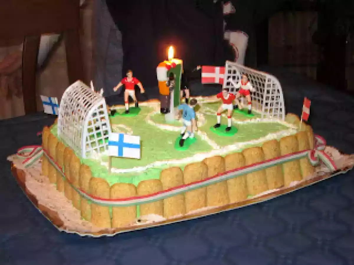 Torta campo da calcio PrecedenteProssimo Dessertfacile1 h 10 m Invia questa ricetta ad un amico Stampa la ricetta Contatta l'autore della Ricetta Pubblica la foto di questa ricetta Ingredienti 4 10 uova intere 400 g di farina 400 g zucchero 1 pizzico di sale aroma a piacere 1 pizzico di lievito facoltativo