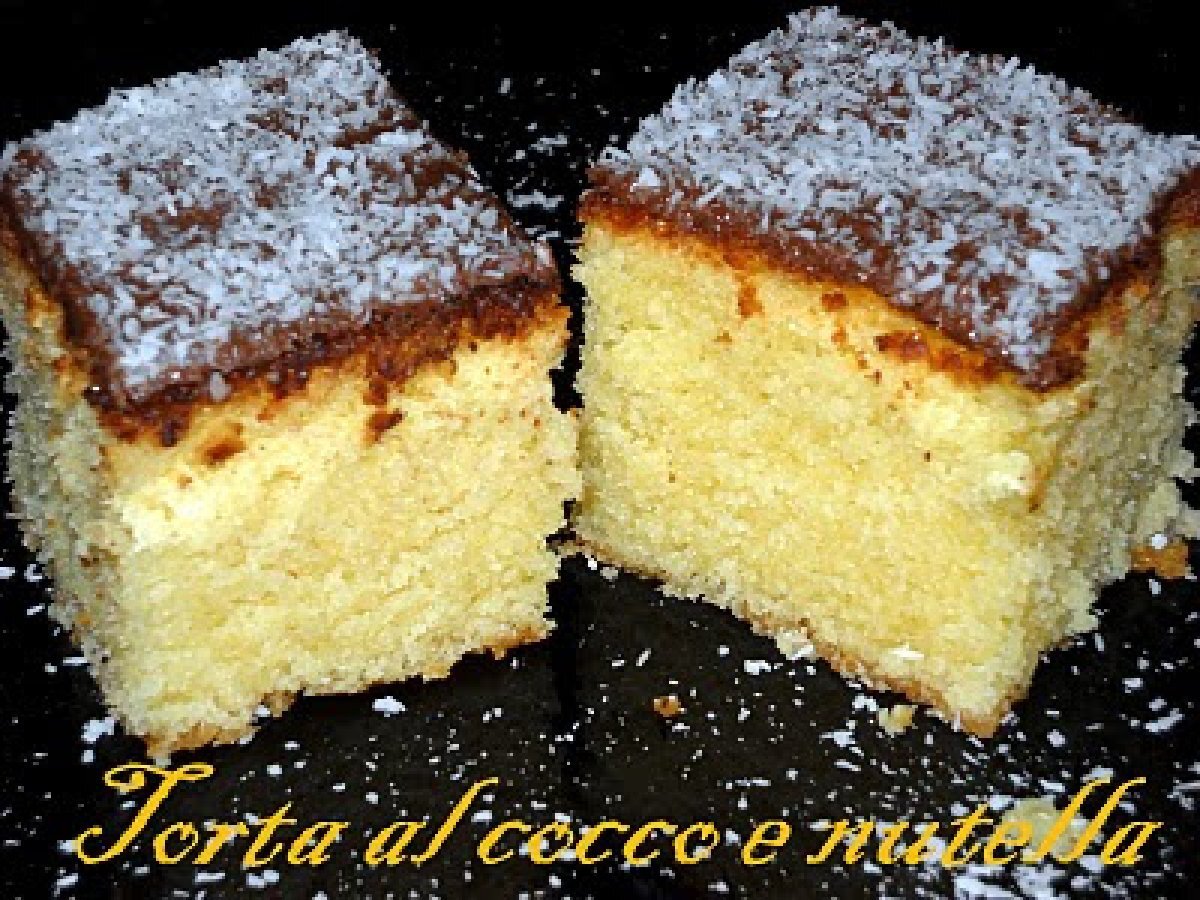 Torta cocco e nutella Dessertfacile1 h 20 m1460 Kcal Invia questa ricetta ad un amico Stampa la ricetta Contatta l'autore della Ricetta Pubblica la foto di questa ricetta Ingredienti 4 3 uova intere 350 g zucchero 300 g olio di semi 200 g latte 80 g farina di cocco 320 g farina bianca 1 bustina lievito Costo stimato: 1.96Euros€ (0.49€/Porzioni)