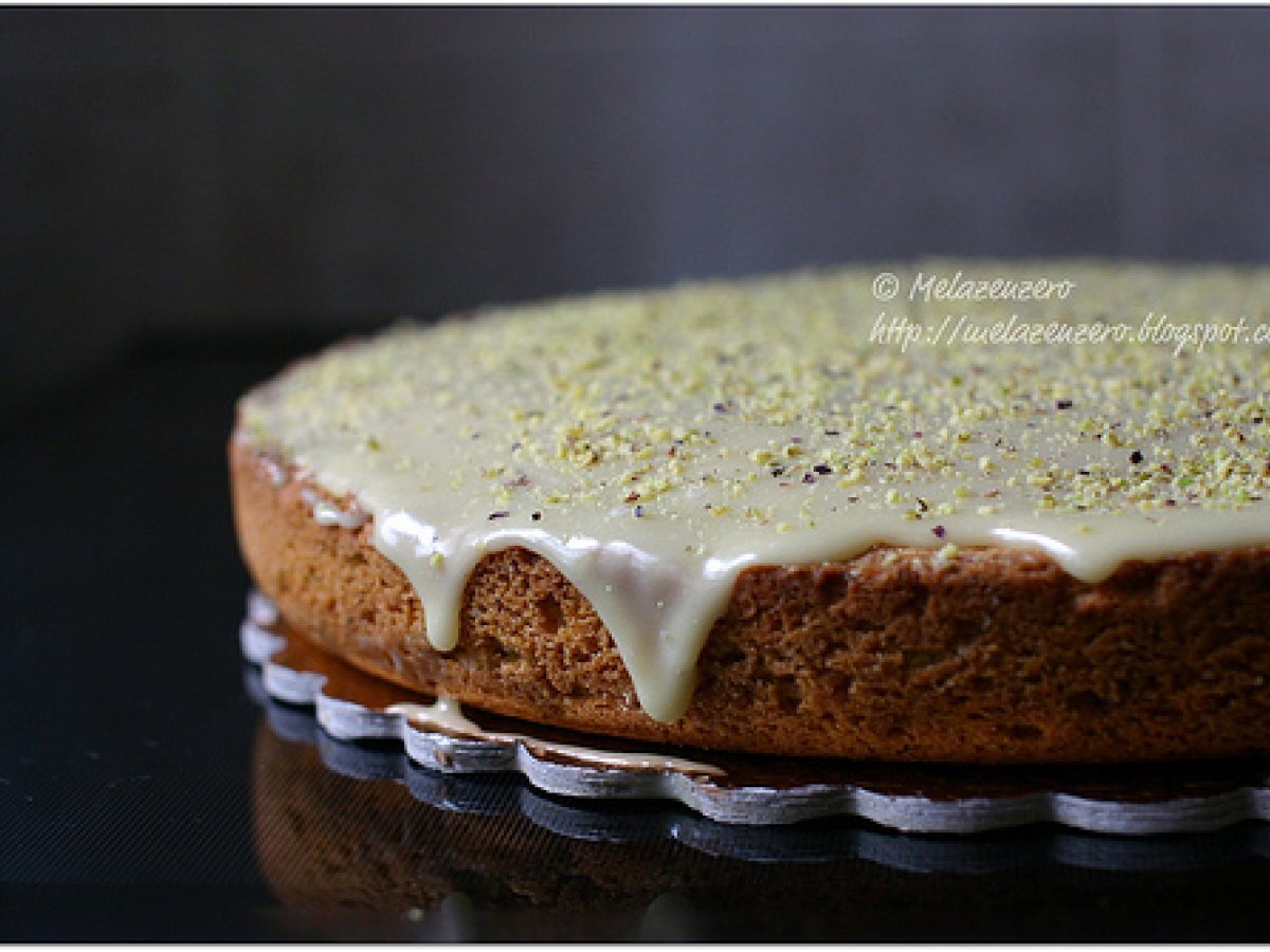 Torta cocco pistacchio e limone, glassata al cioccolato bianco