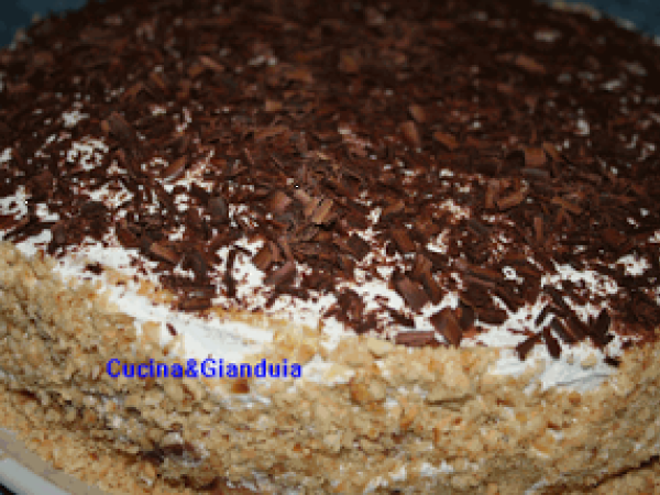 Torta con crema rocher PrecedenteProssimo Dessertfacile50 min Invia questa ricetta ad un amico Stampa la ricetta Contatta l'autore della Ricetta Pubblica la foto di questa ricetta Ingredienti 3 1) per pan di spagna: 250 g. di uova 175 g. di zucchero semolato 150 g. di farina 00 50 g. di fecola di patate 2) per la crema rocher: 400 g. di nutella 200 ml di panna 50 g. di nocciole tritate mezzo pacco di wafers alla nocciola sbriciolati 3) Decorazione: 100-150 ml panna fresca 60 g. nocciole tritate 50g. circa cioccolato fondente